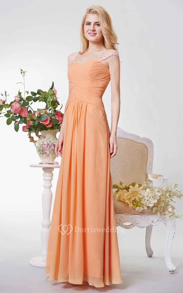 Sweetheart Criss Cross Ruched A-line Long Chiffon Dress