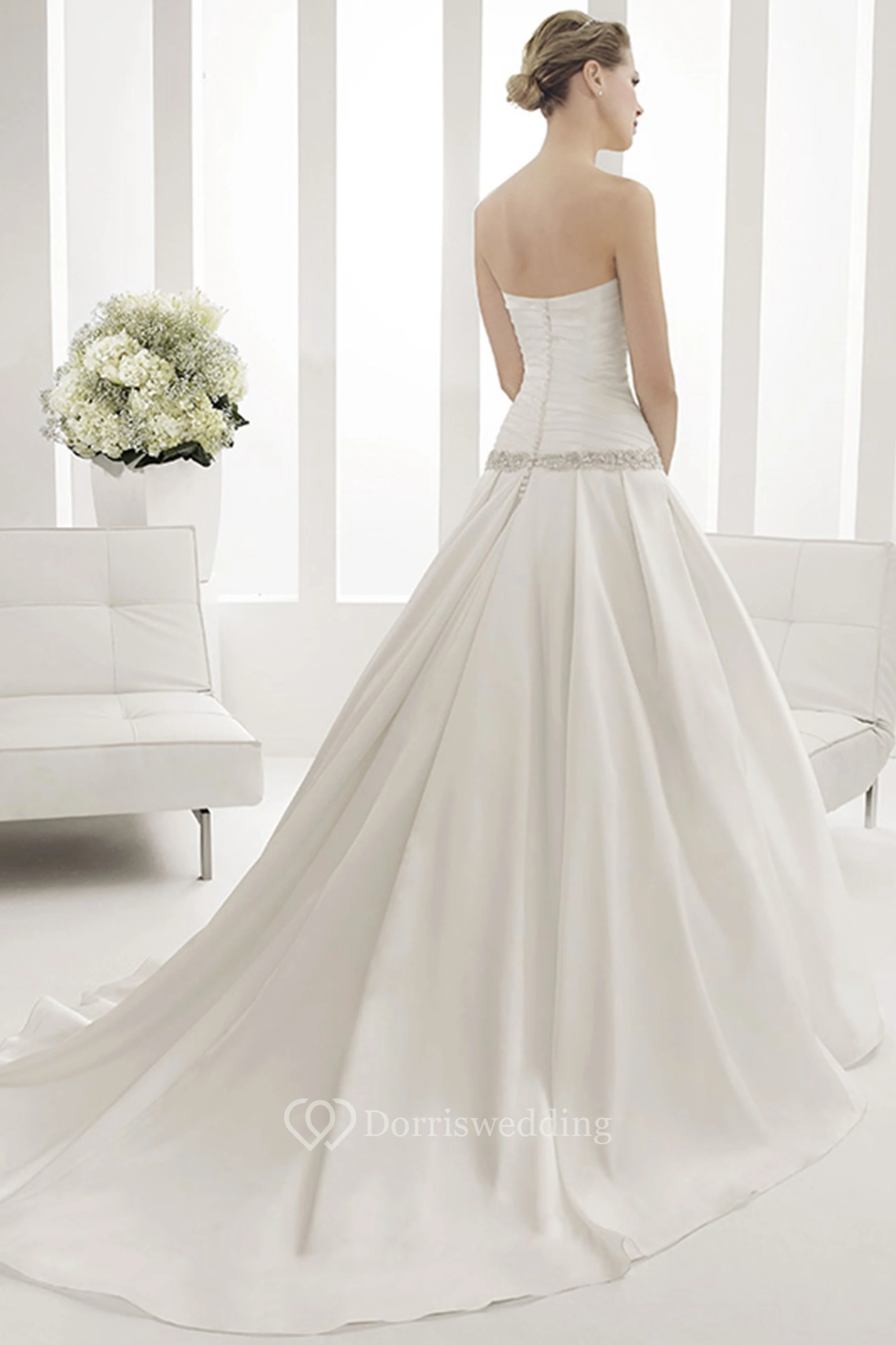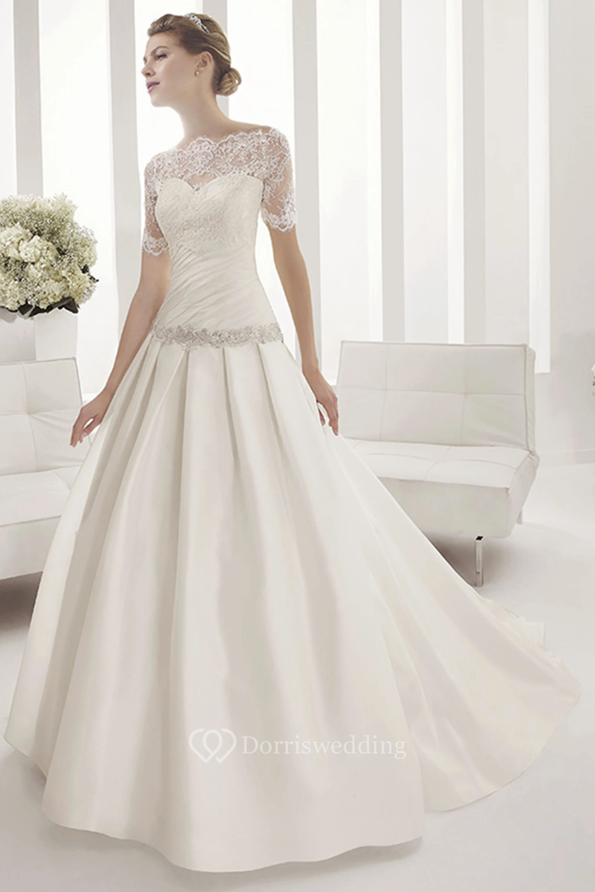 Sweetheart Drop Waist Taffeta Ball Gown With Removable Half Sleeves