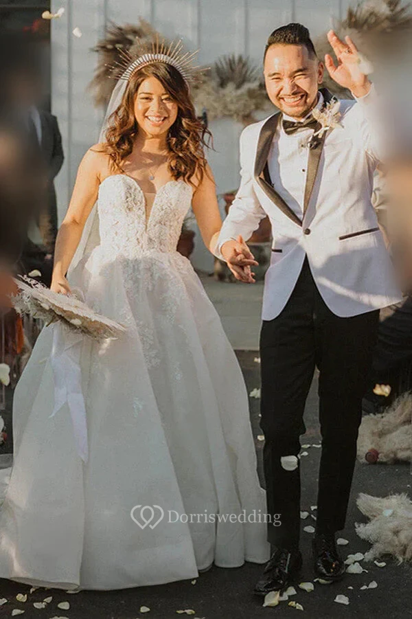Sweetheart Elegant A-line Ball Gown Applique Wedding Dress