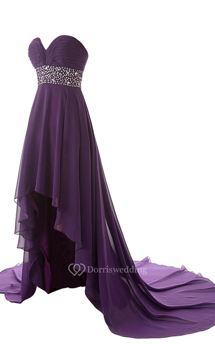 Sweetheart Empire High-low Chiffon Dress With Sequins