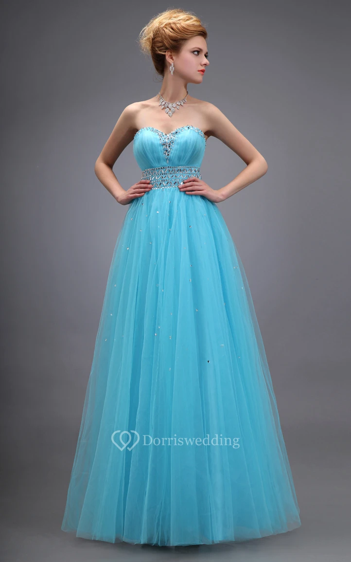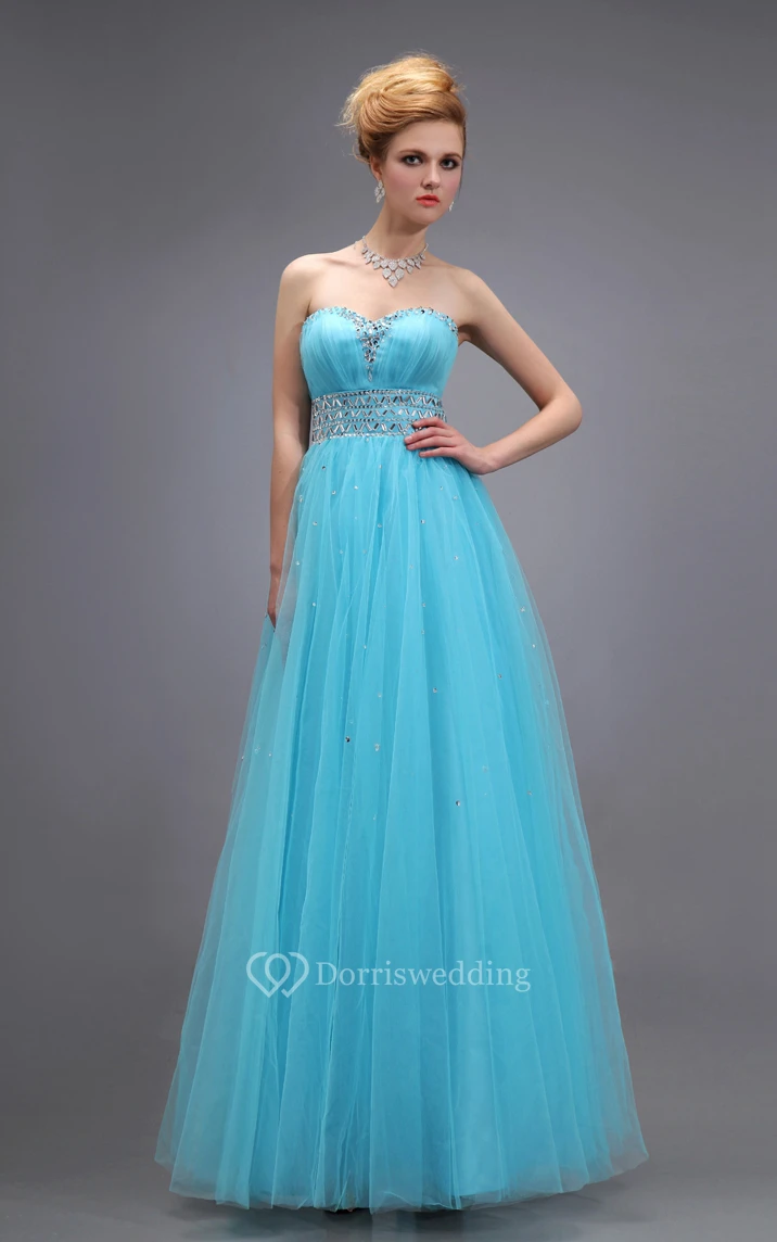 Sweetheart Empire Tulle A-Line Long Dress With Ruched Bodice