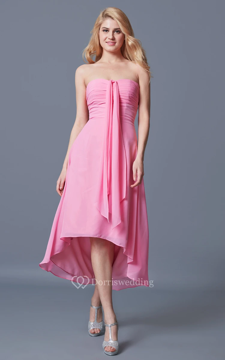 Sweetheart Empire Waist High Low Chiffon Dress With Front Draping