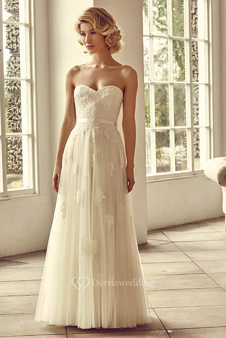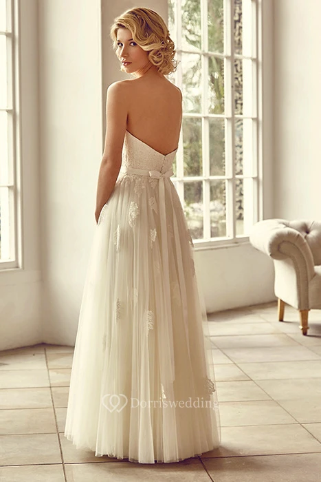 Sweetheart Floor-Length Appliqued Tulle Wedding Dress With Bow And Lace-Up