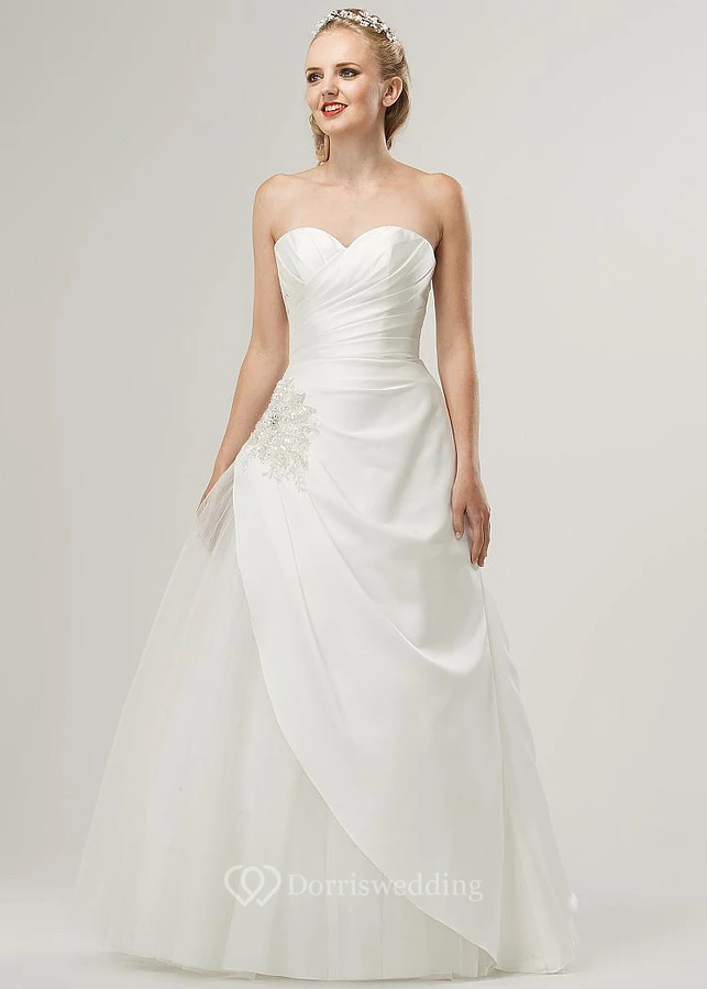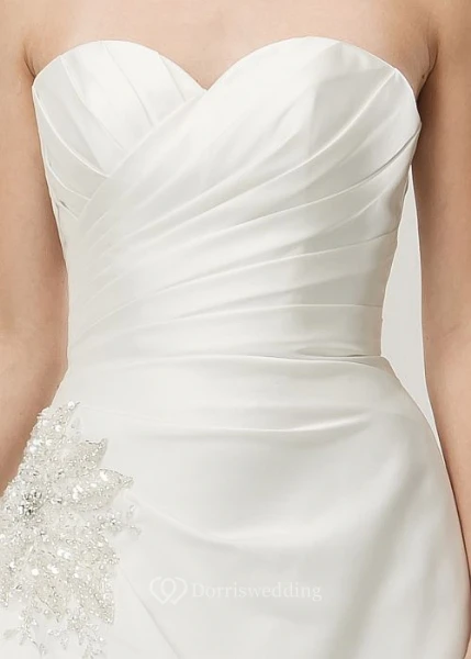 Sweetheart Floor-Length Beaded Satin Wedding Dress With Criss Cross And Corset Back