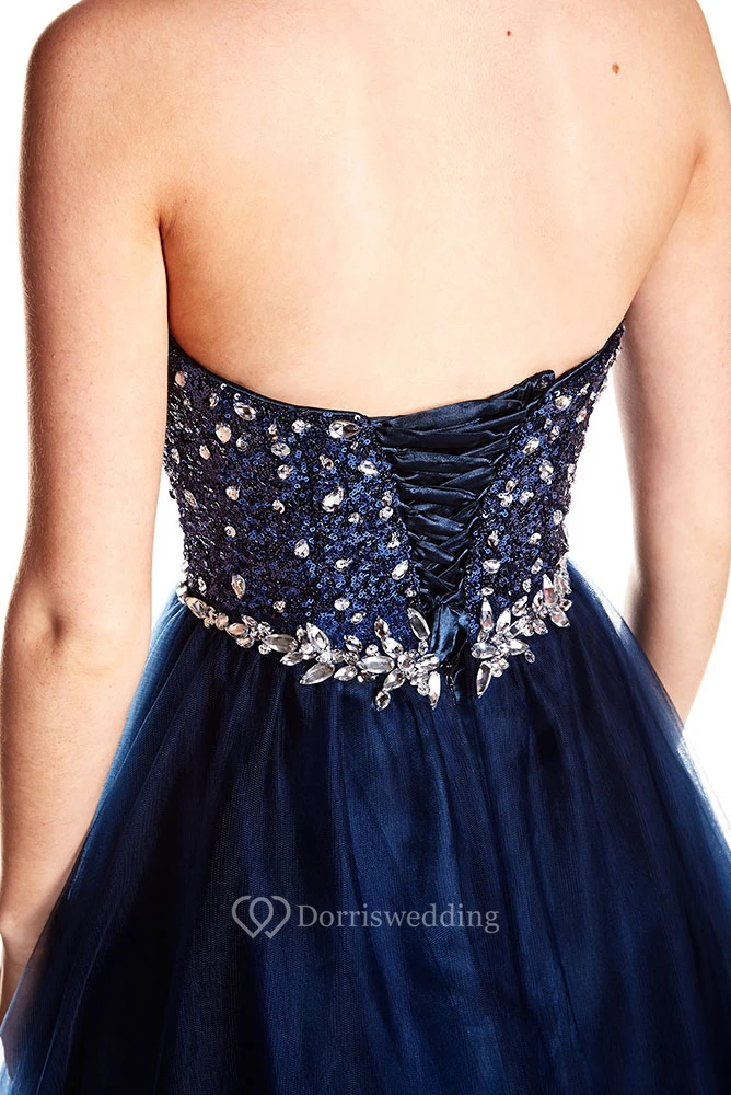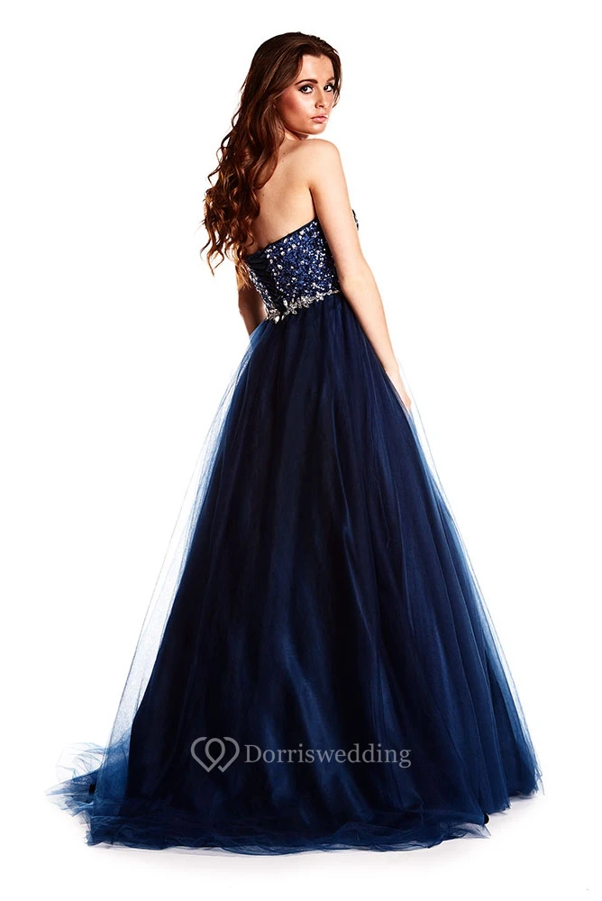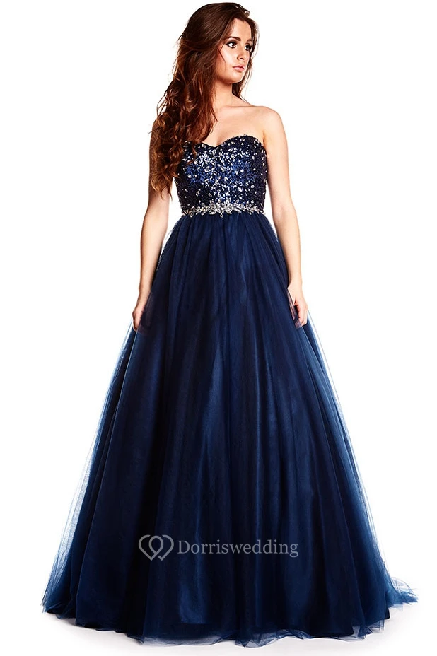 Sweetheart Floor-Length Beaded Tulle Prom Dress With Waist Jewellery And Lace Up