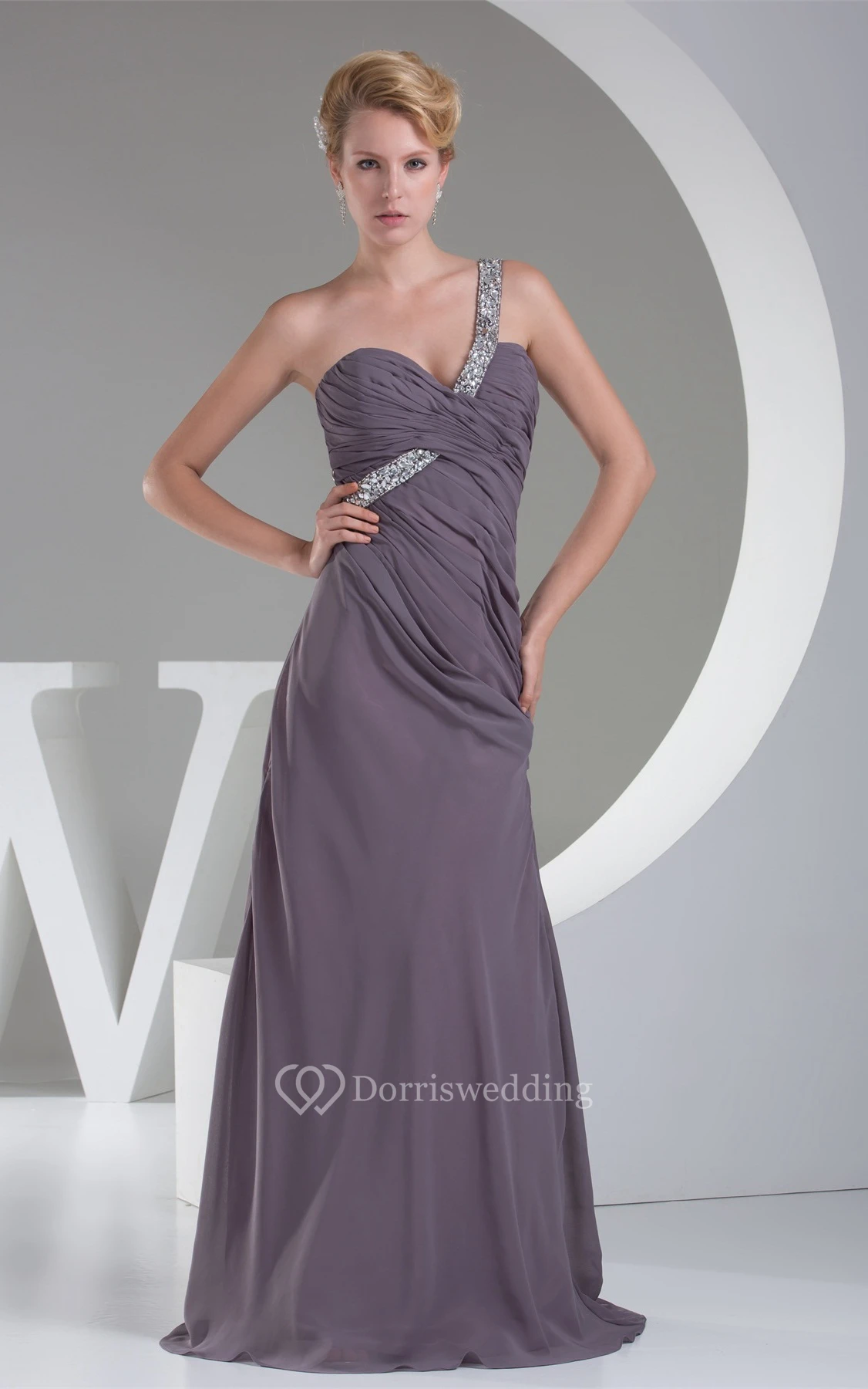 Sweetheart Floor-Length Chiffon Jeweled Strap and Dress With Ruching