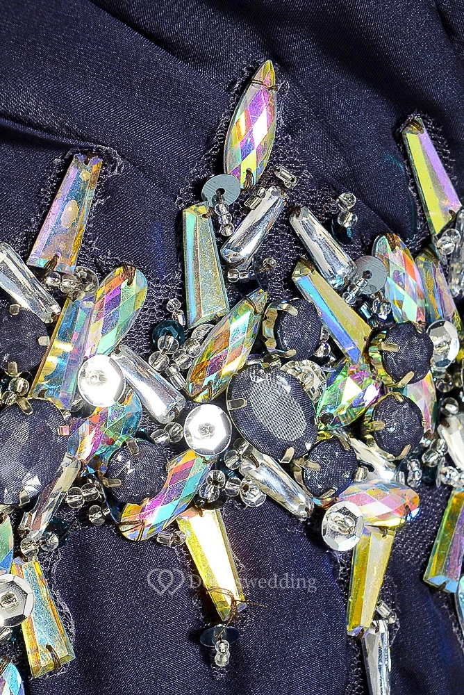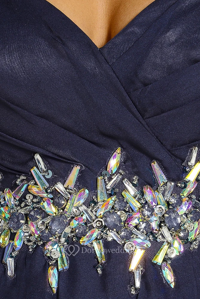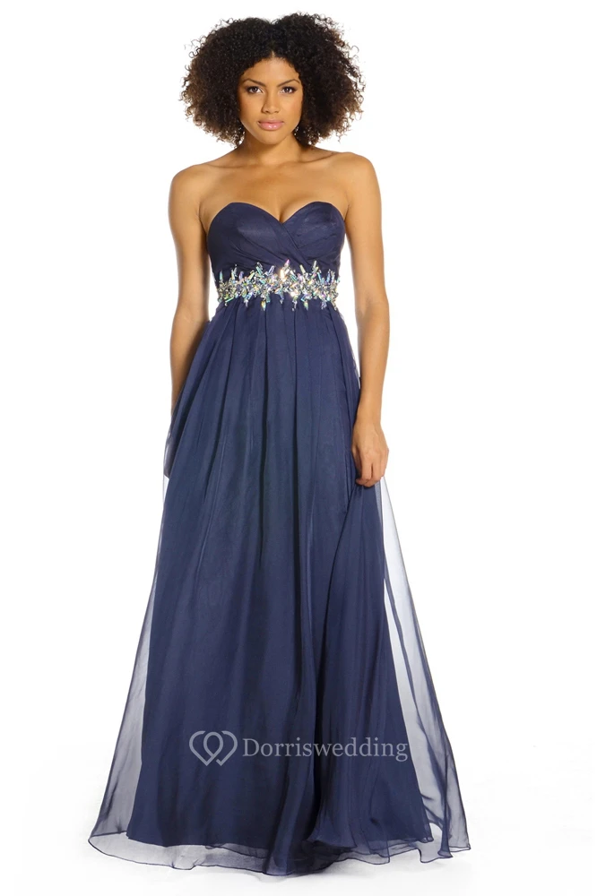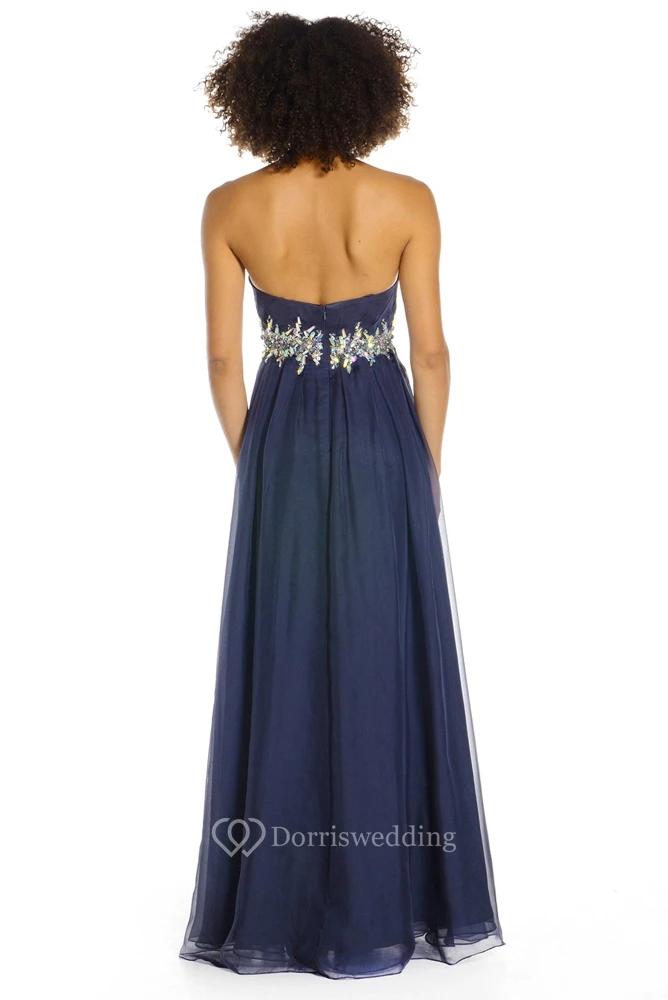 Sweetheart Floor-Length Jeweled Chiffon Prom Dress With Criss Cross And V Back