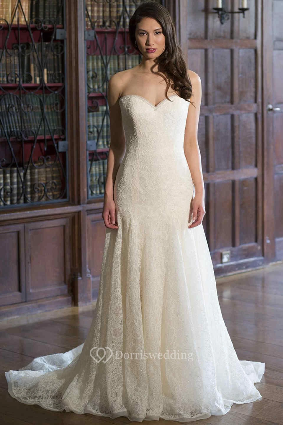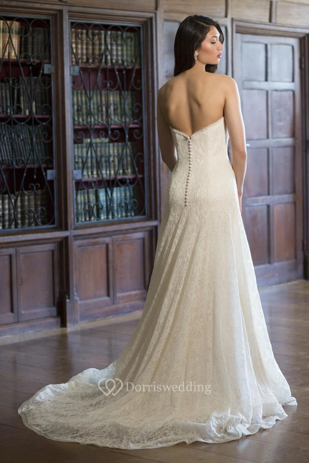 Sweetheart Floor-Length Lace Wedding Dress With V Back