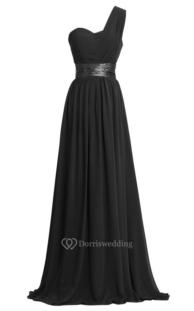 Sweetheart Floor Length One Shoulder Chiffon Dress