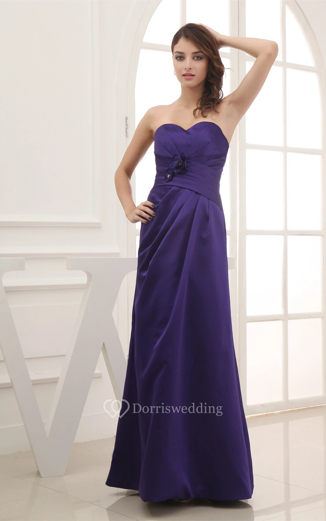 Sweetheart Floor-Length Sheath Central Ruching and Dress With Flower