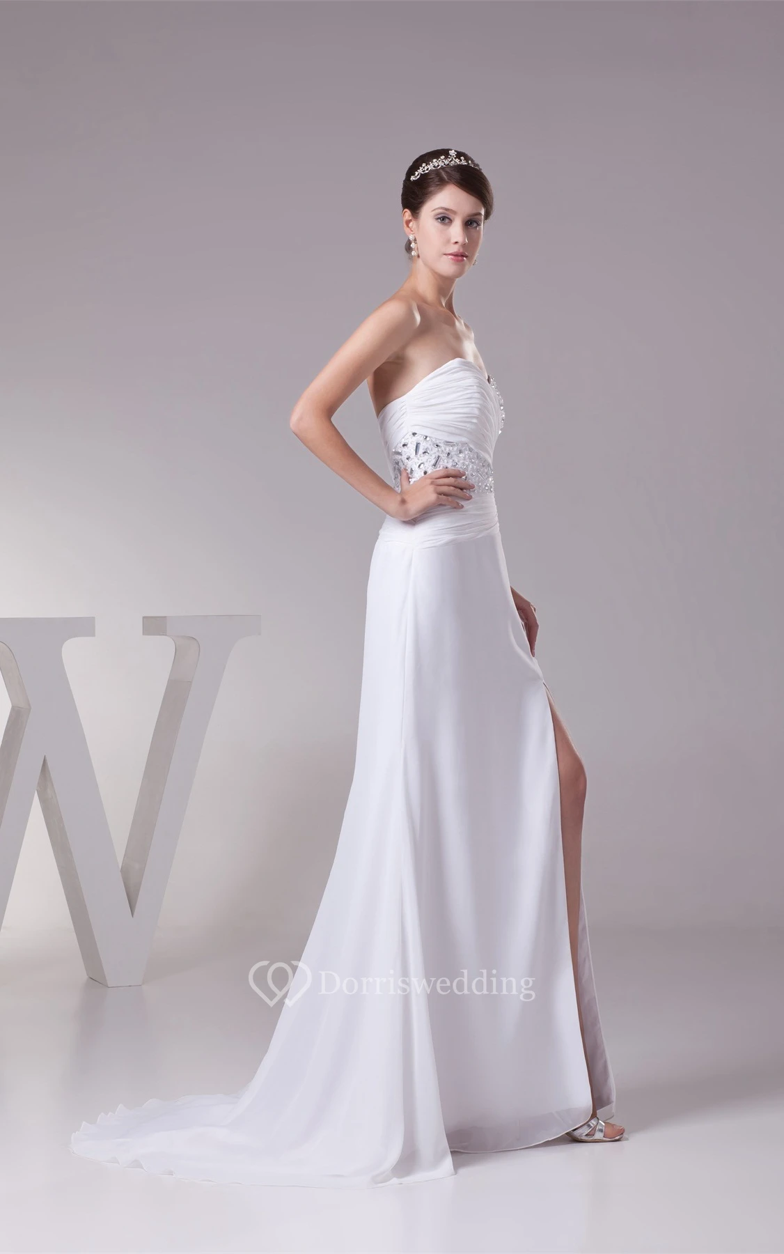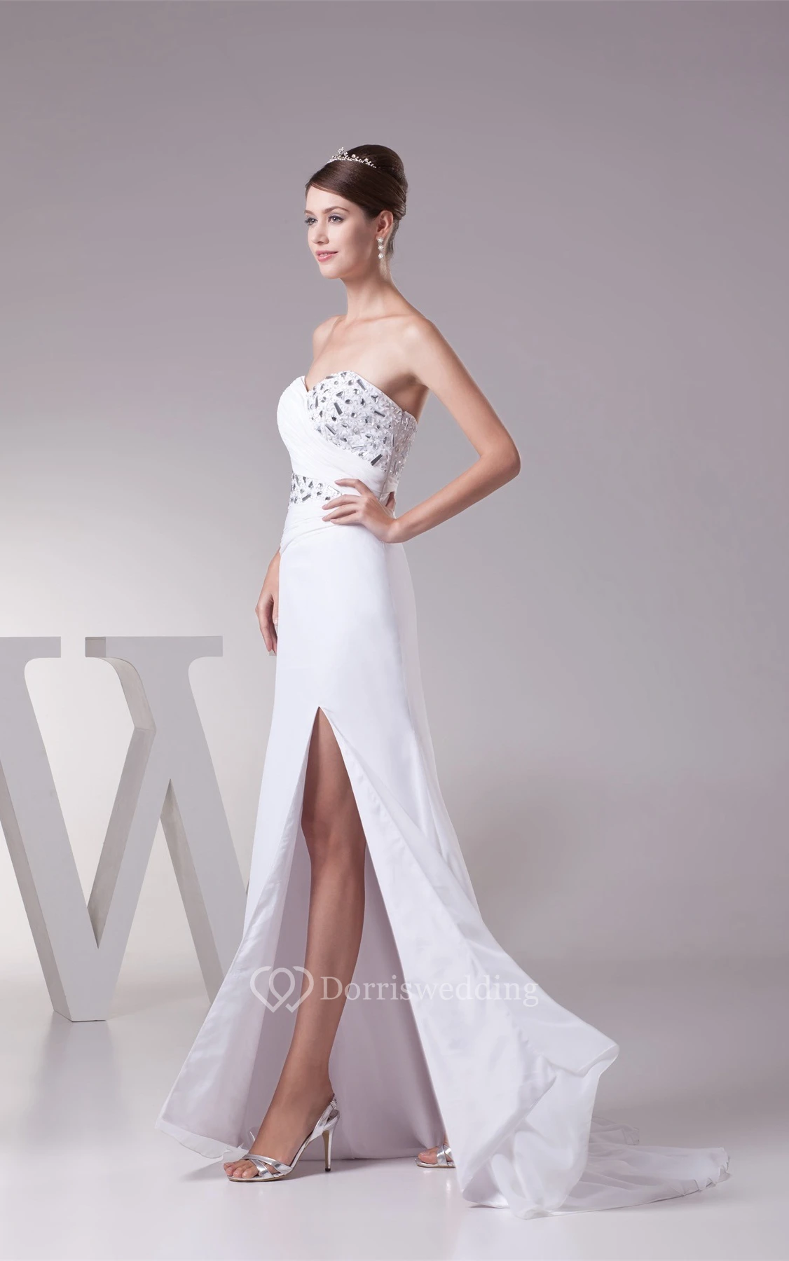 Sweetheart Front-Split Criss-Cross Dress With Rhinestone