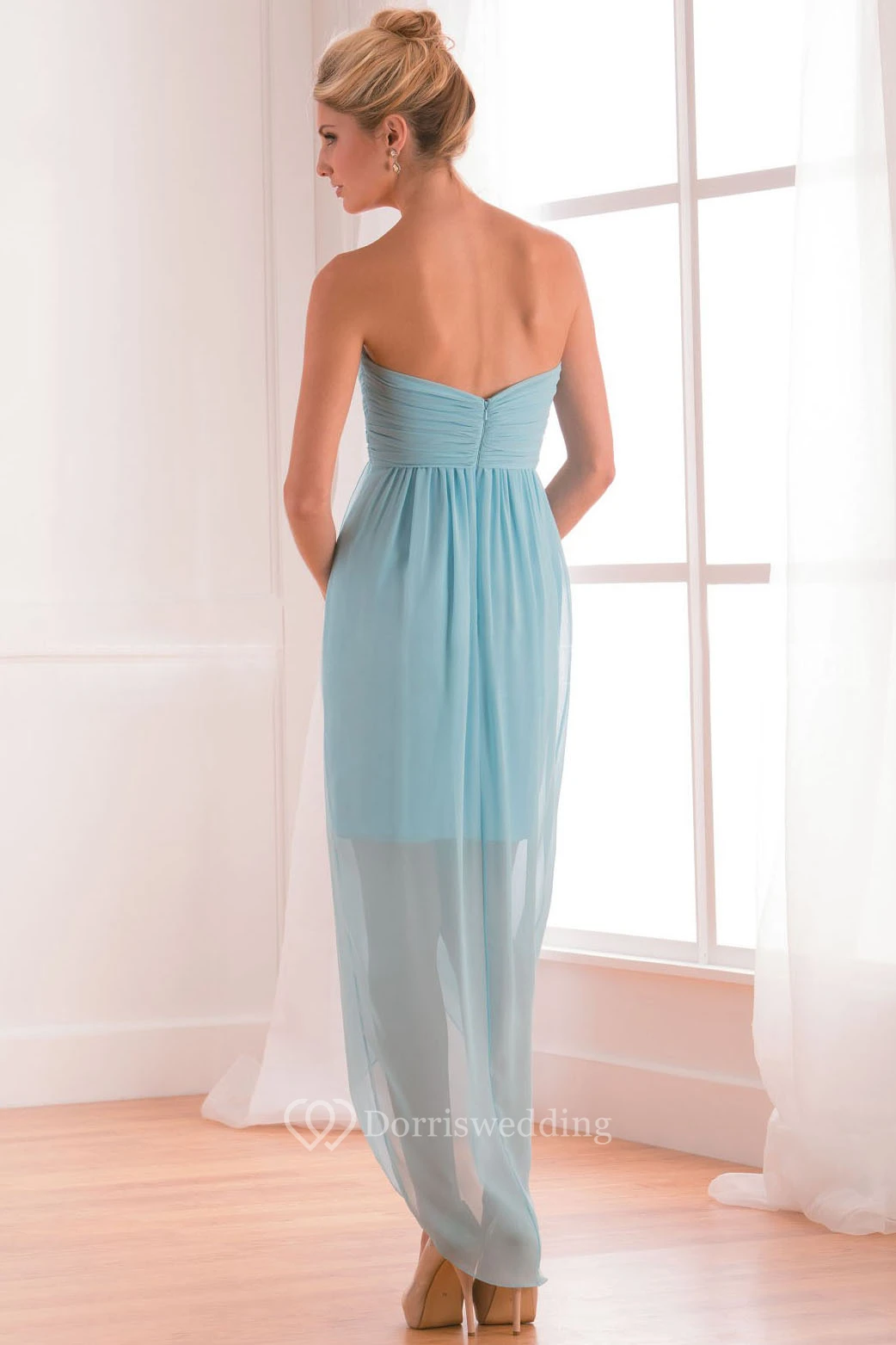 • Hemline/Train: High-Low
