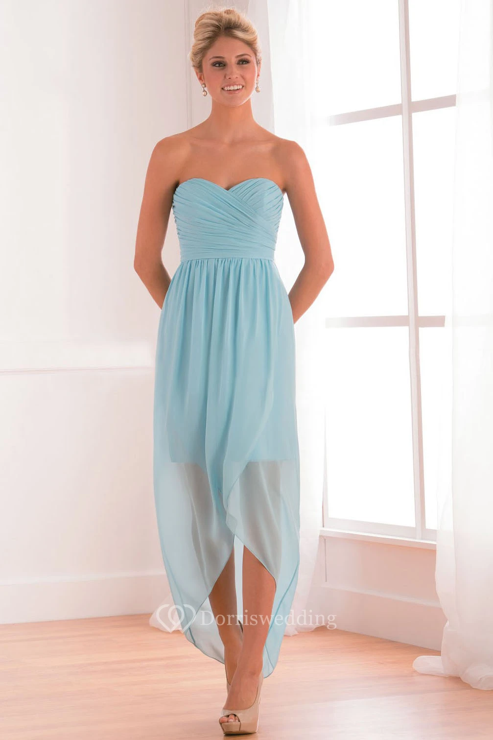 Sweetheart High-Low Bridesmaid Dress With Crisscrossed Ruching