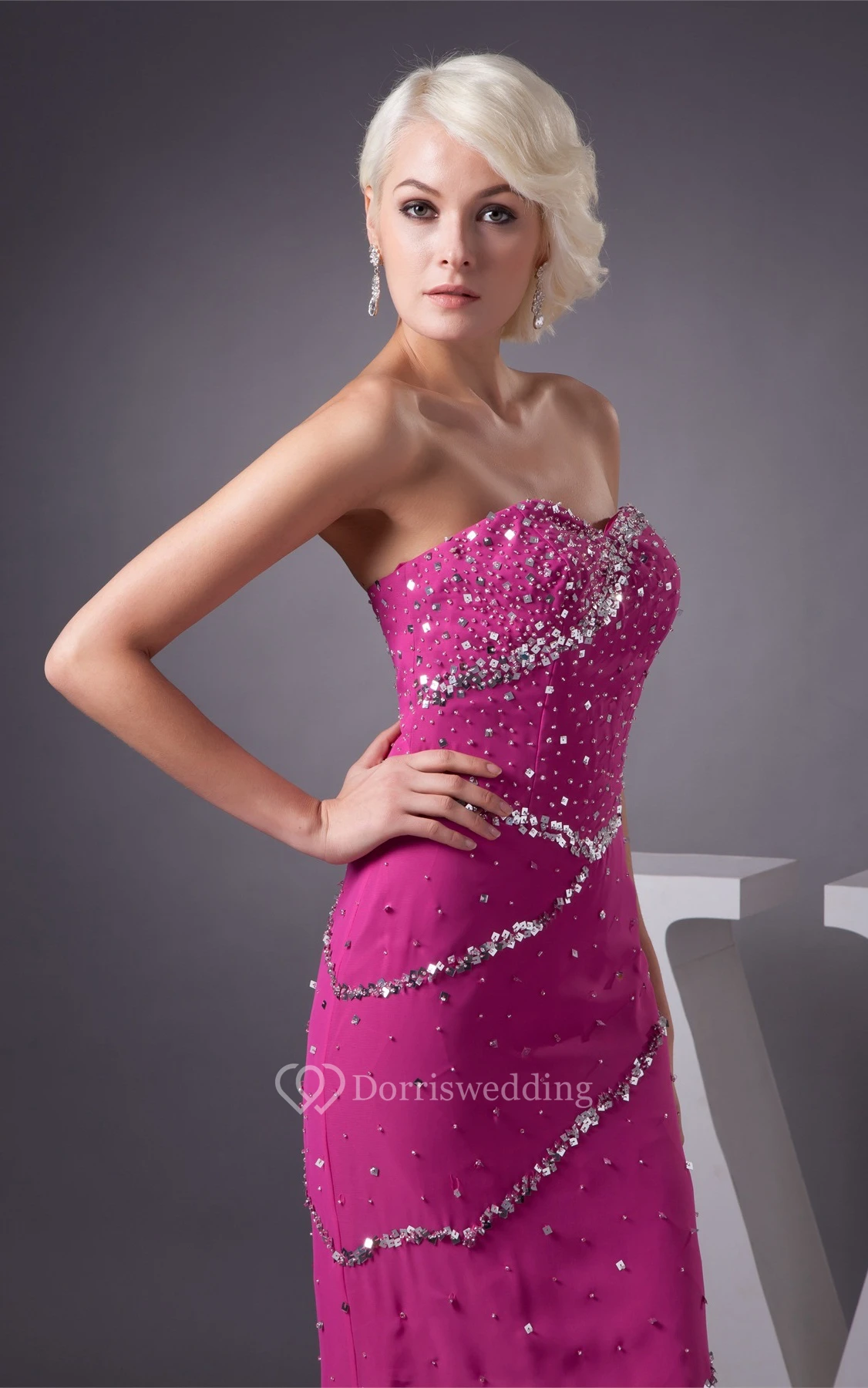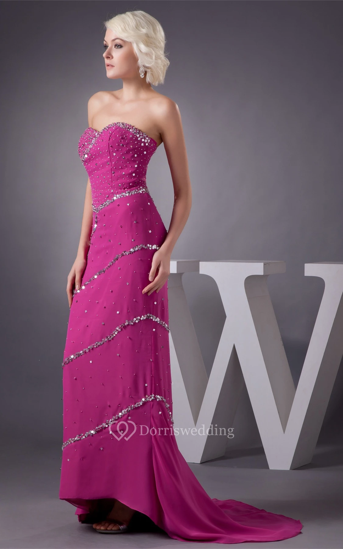 Sweetheart High-Low Chiffon Sweep Train and Dress With Beading