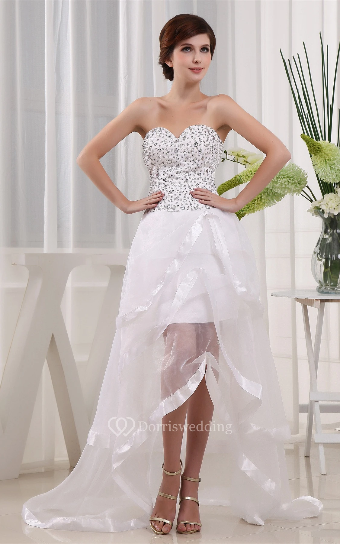 Sweetheart High-Low Jeweled Bodice and Dress With Tiers