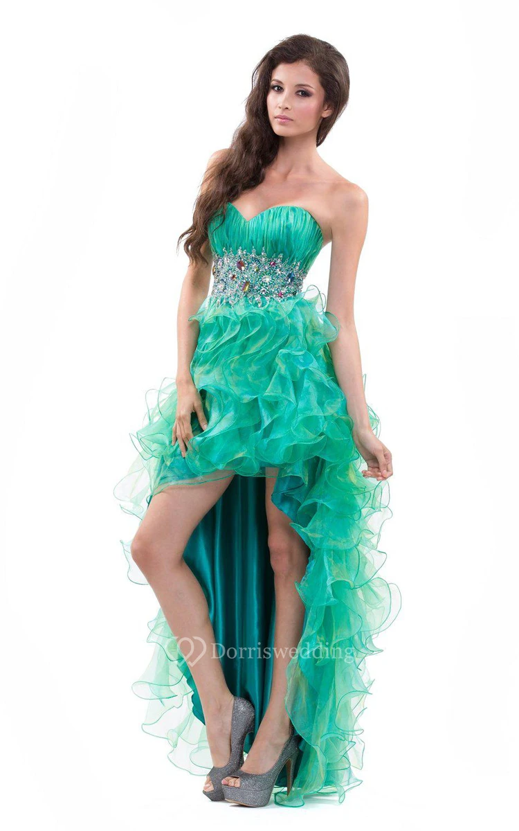 Sweetheart High-low Ruffled Dress With Rhinestones