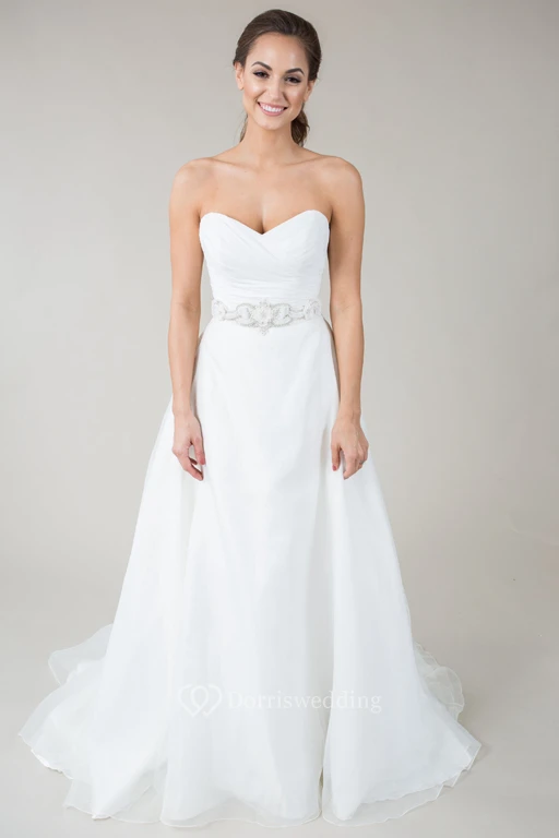 Sweetheart Jeweled Chiffon Wedding Dress With Criss Cross