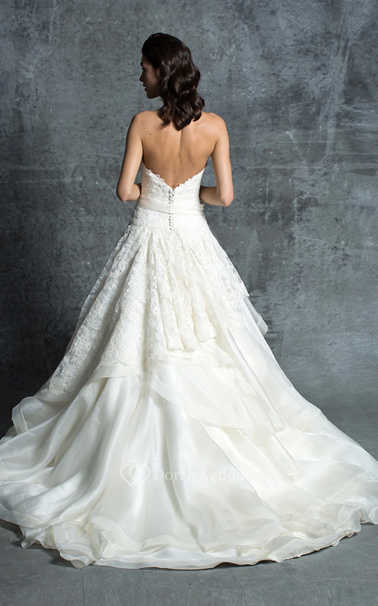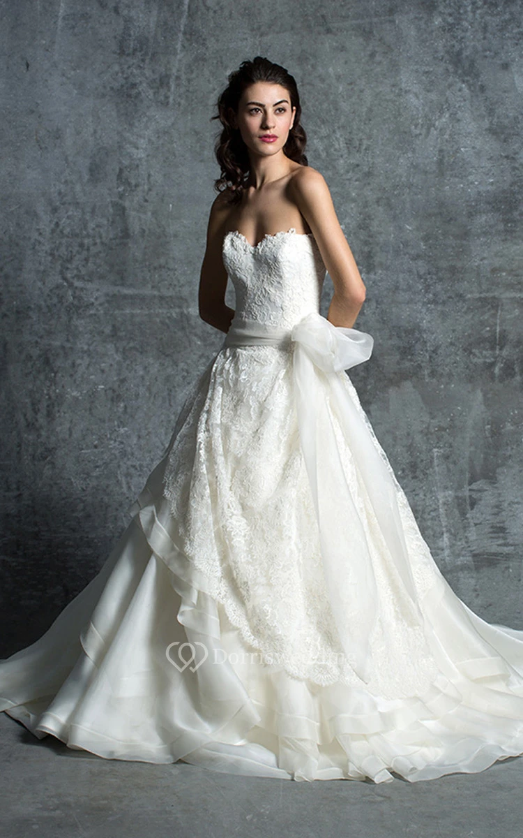 Sweetheart Lace A-line Dress With Sash And Low-V Back