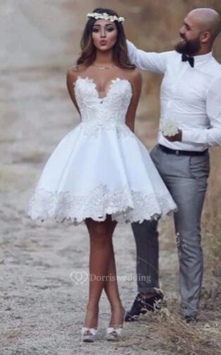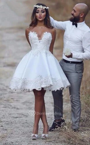 Sweetheart Lace Applique Empire A-line Cute Dress