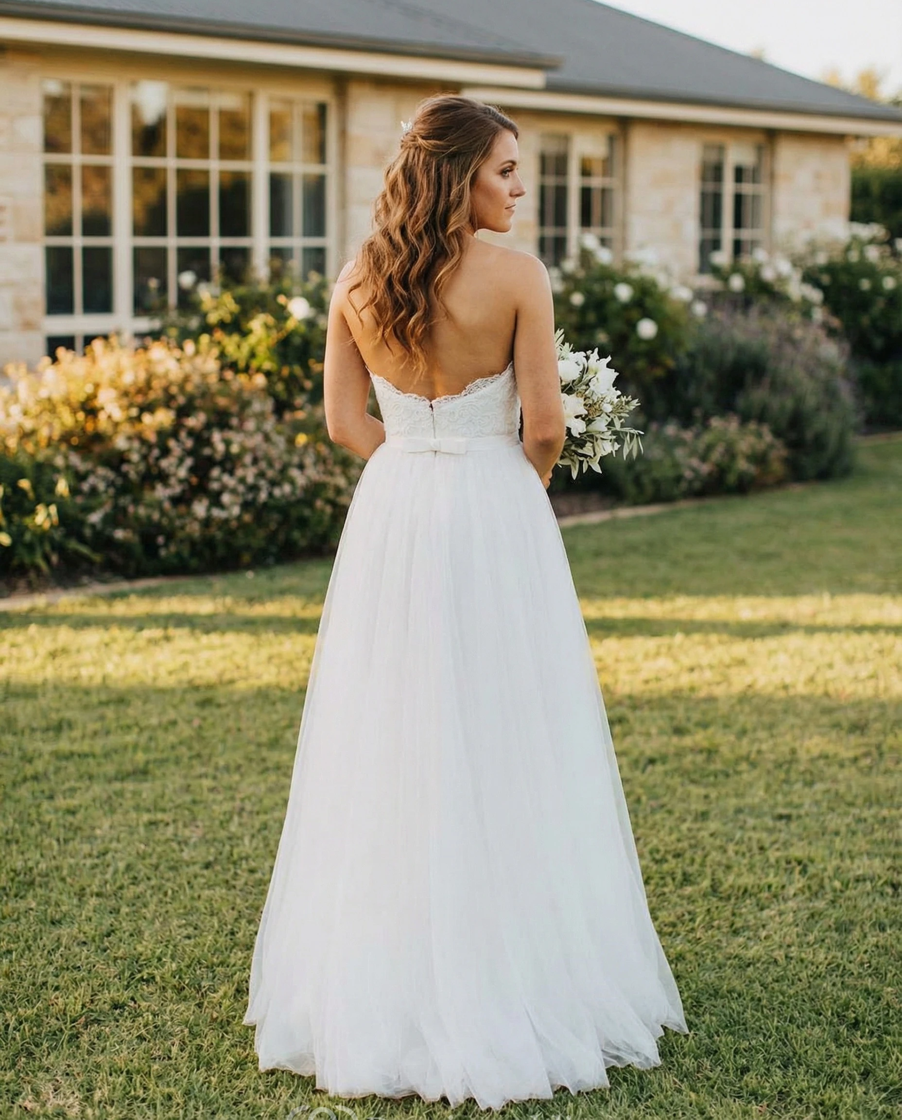 • Back Style: Open Back, Button , Zipper