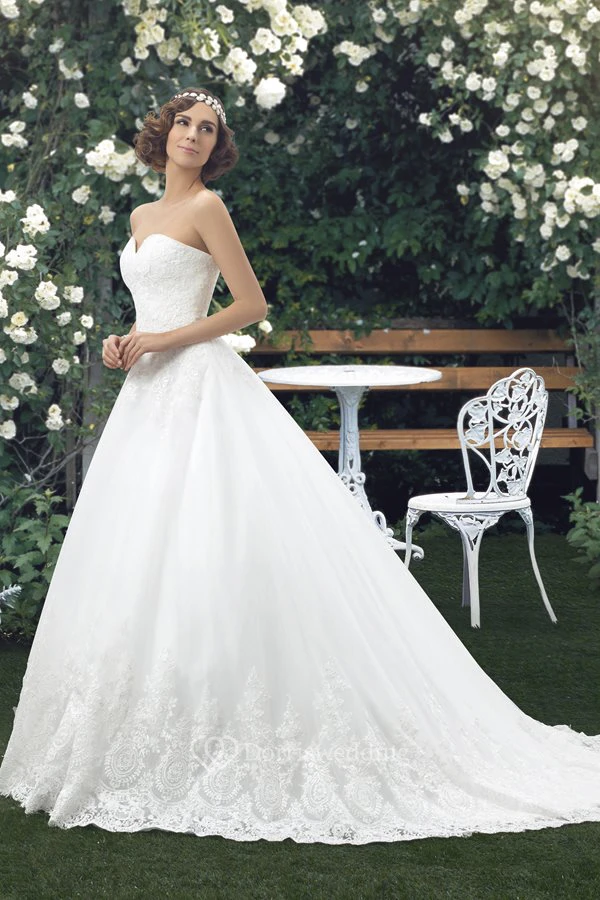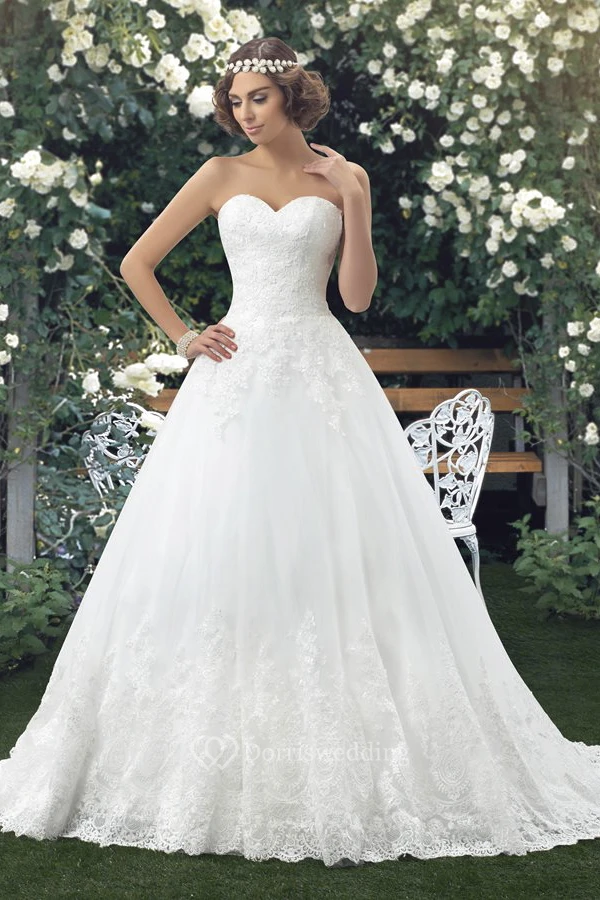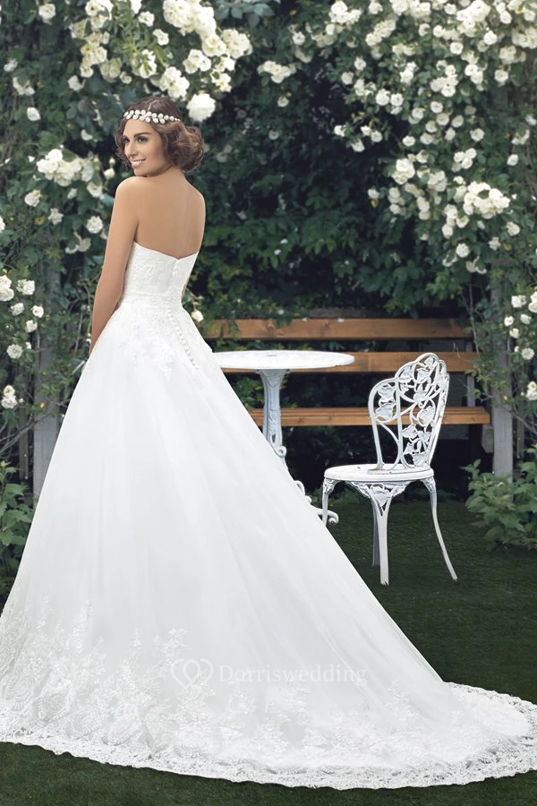 Sweetheart Lace Appliqued Sleeveless Ball Gown Bridal Elegance Dress With Buttons