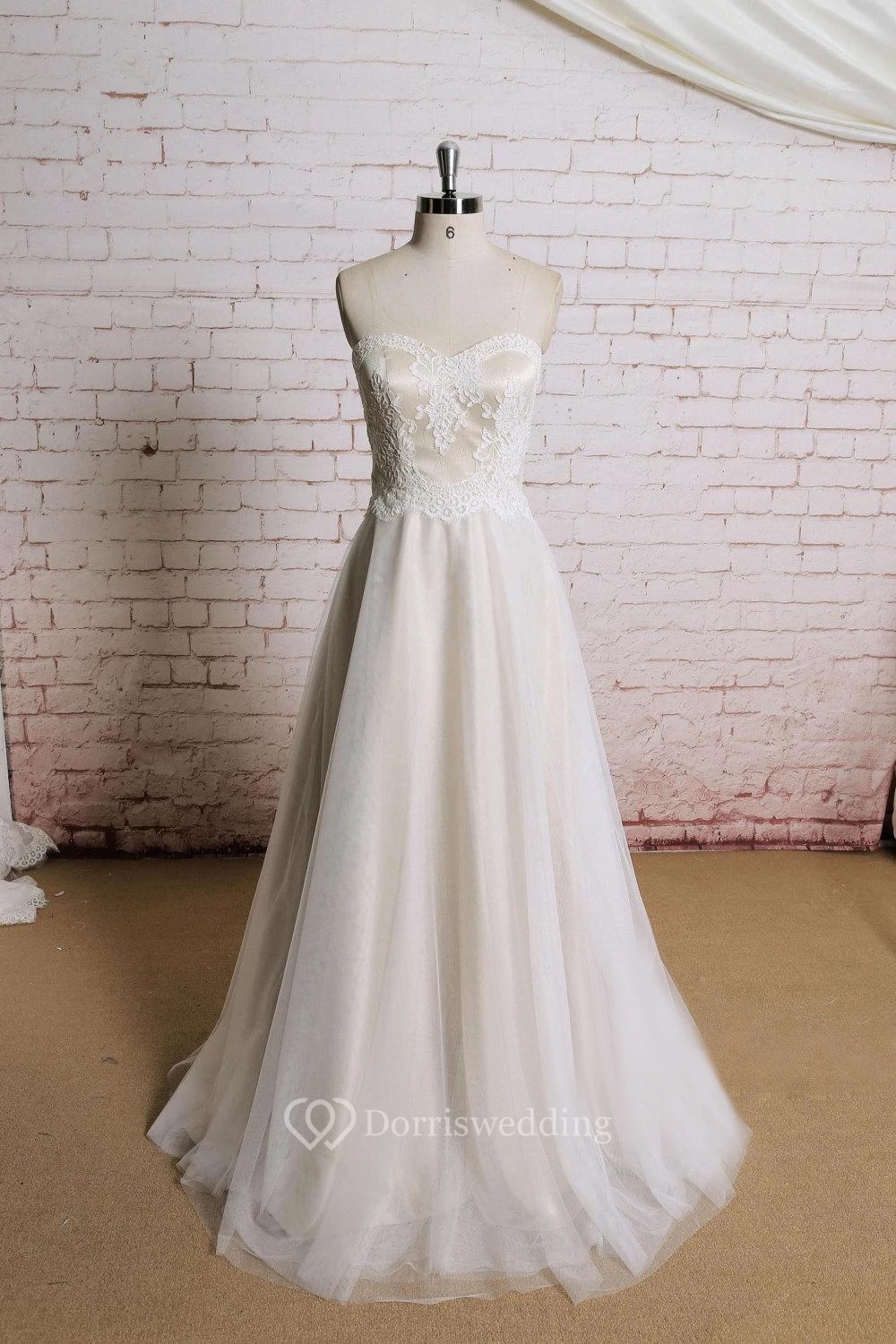 Sweetheart Lace Bodice Tulle Skirt A-Line Bridal Dress