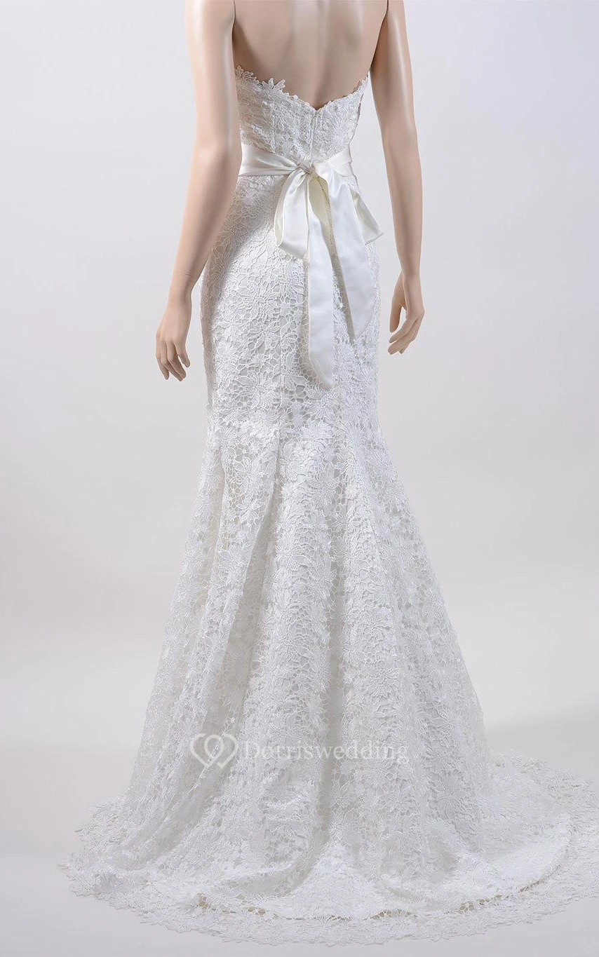 Sweetheart Lace Mermaid Sleeveless Dress With Crystal Detailed Waistbelt and Flower