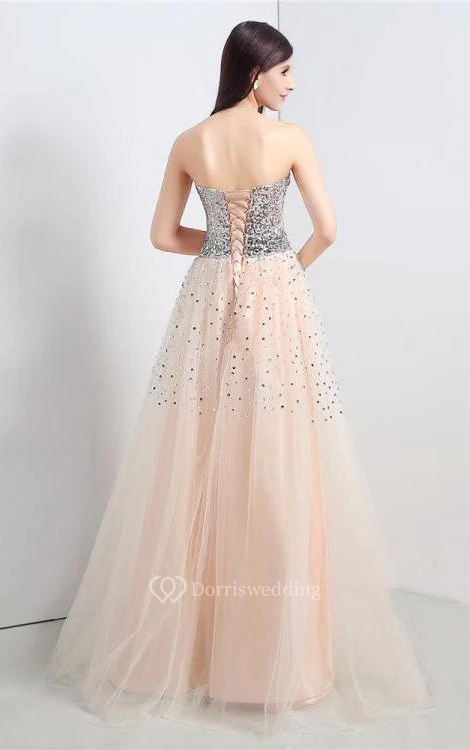 Sweetheart Lace-Up Sequins A-Line Long Prom Dress