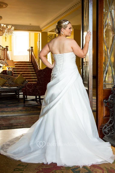Sweetheart Lace-Up Taffeta Wrapped Bridal Gown With Tulle Train