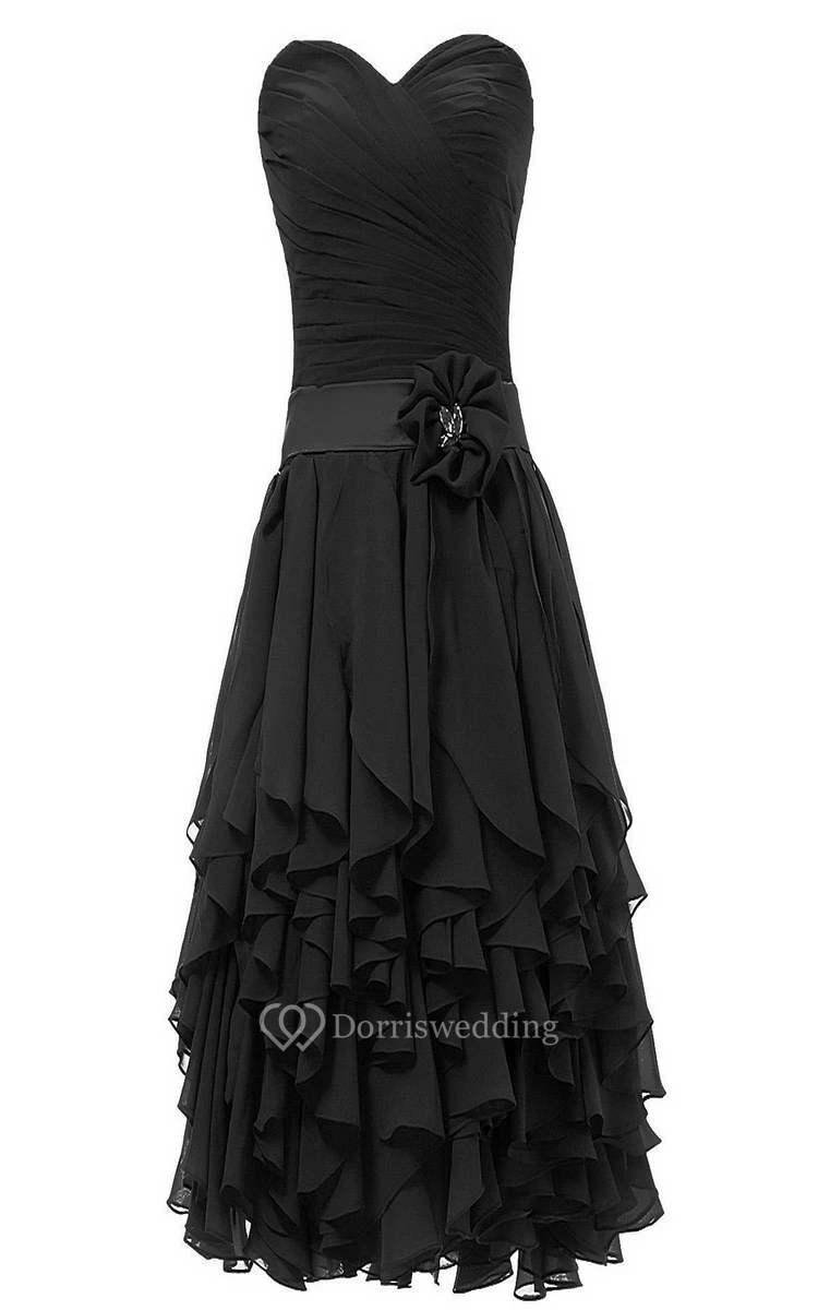 Sweetheart Layered Ruffle Wedding Dress With 3-D Flower