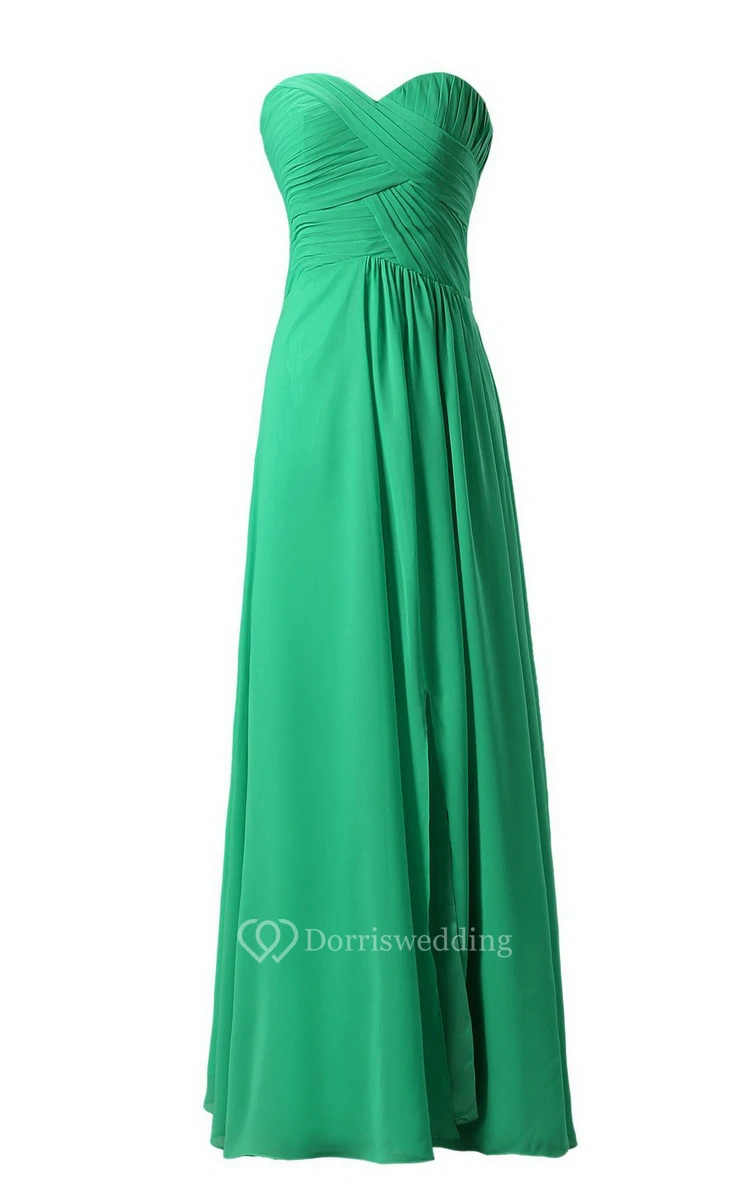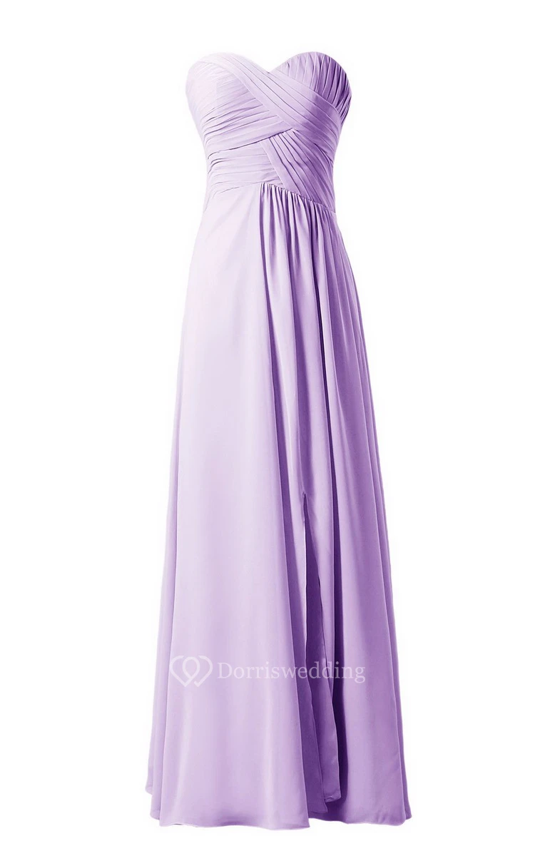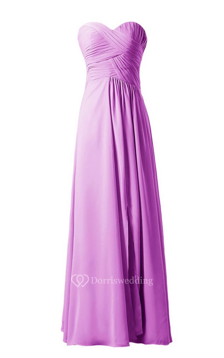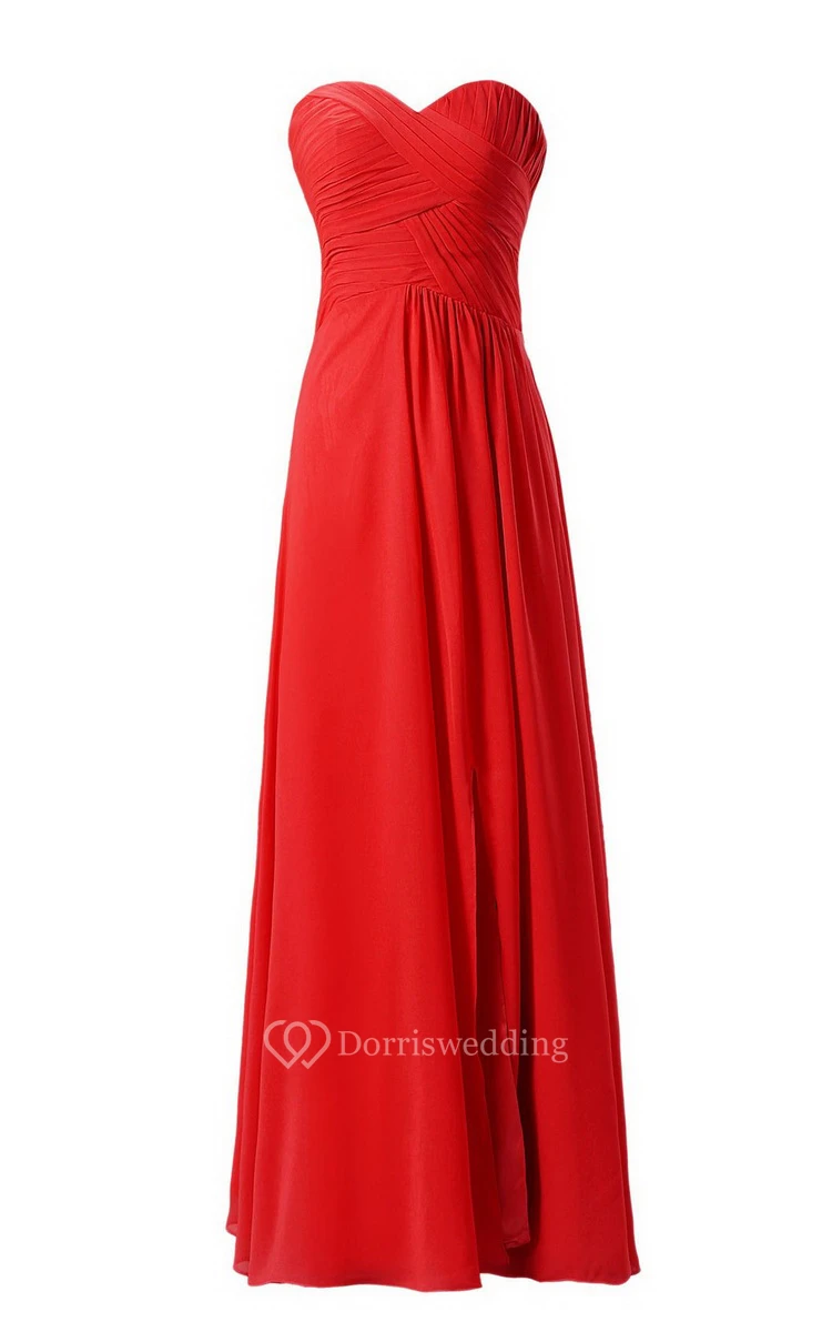 Sweetheart Long Chiffon Dress With Crisscross Ruching