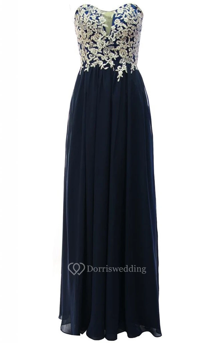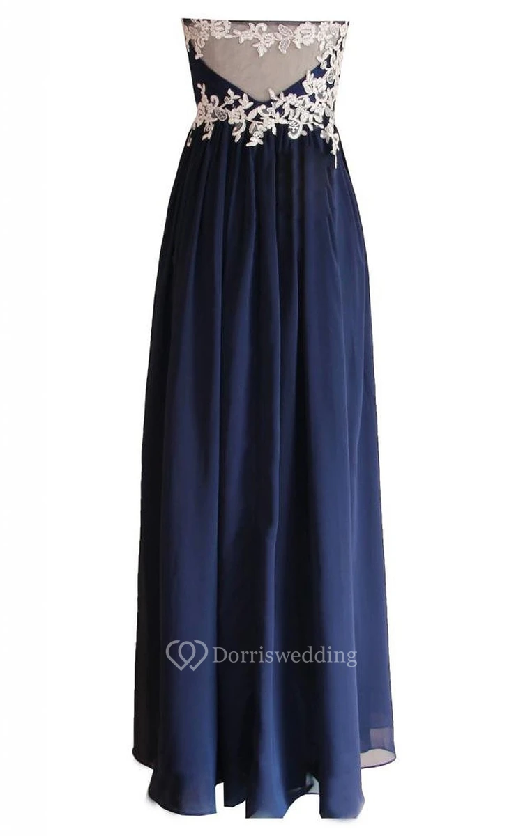 Sweetheart Long Chiffon Dress With Lace Appliques