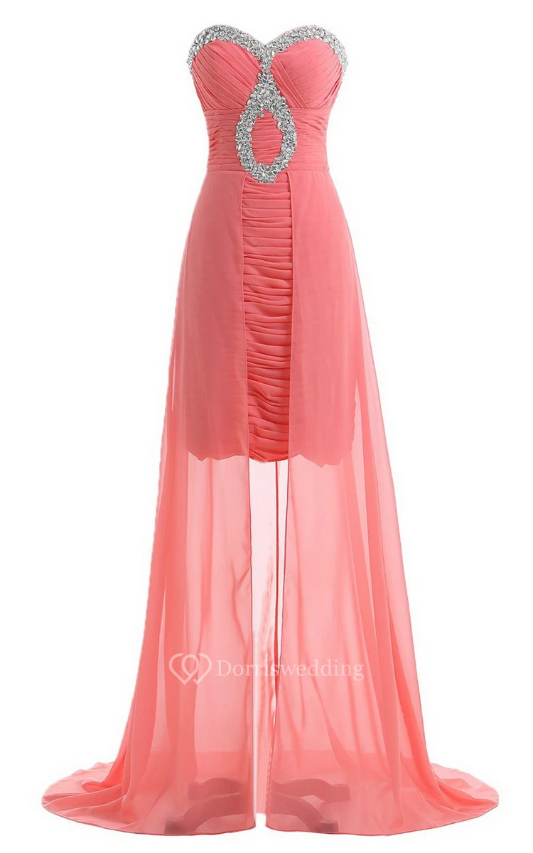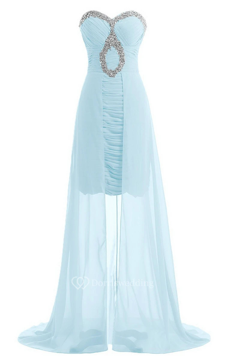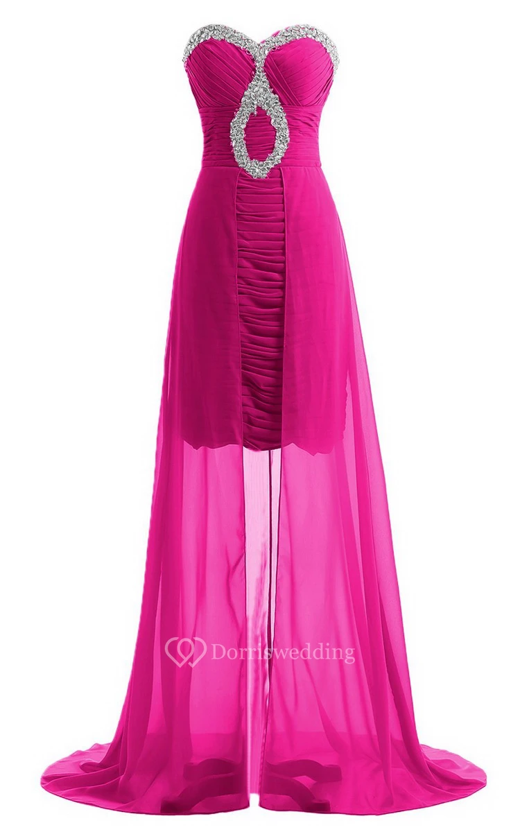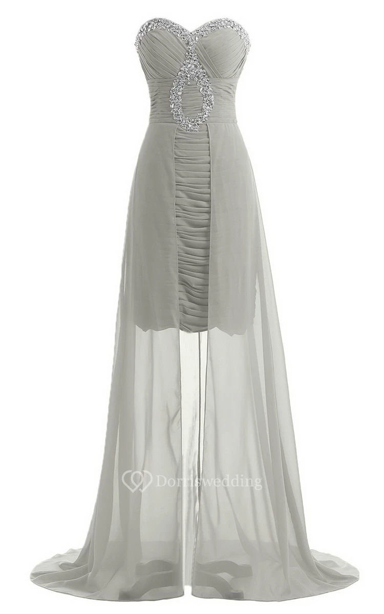 Sweetheart Long Chiffon Dress With Ruching and Sequins