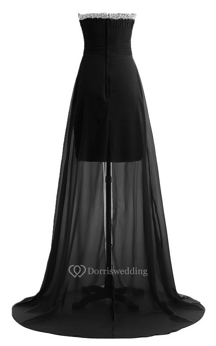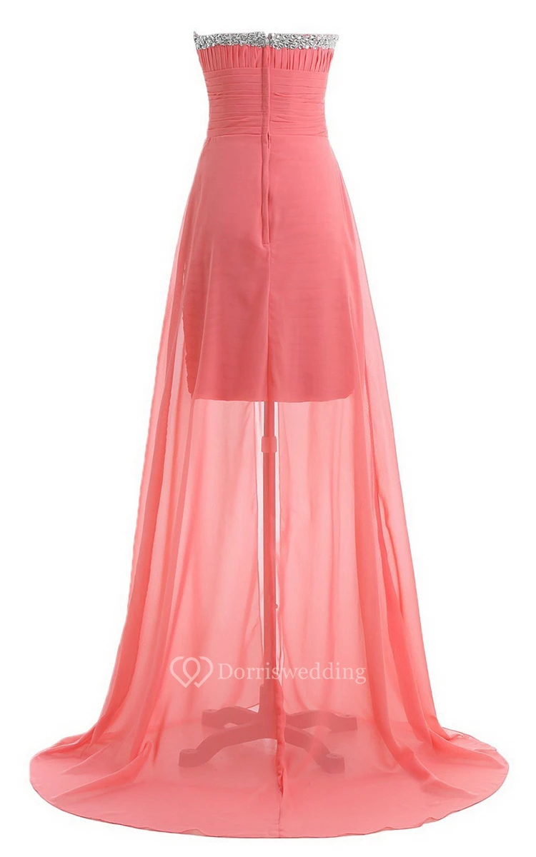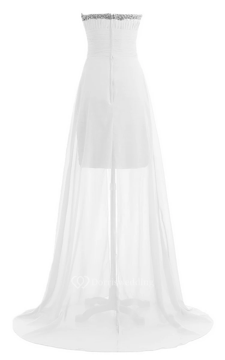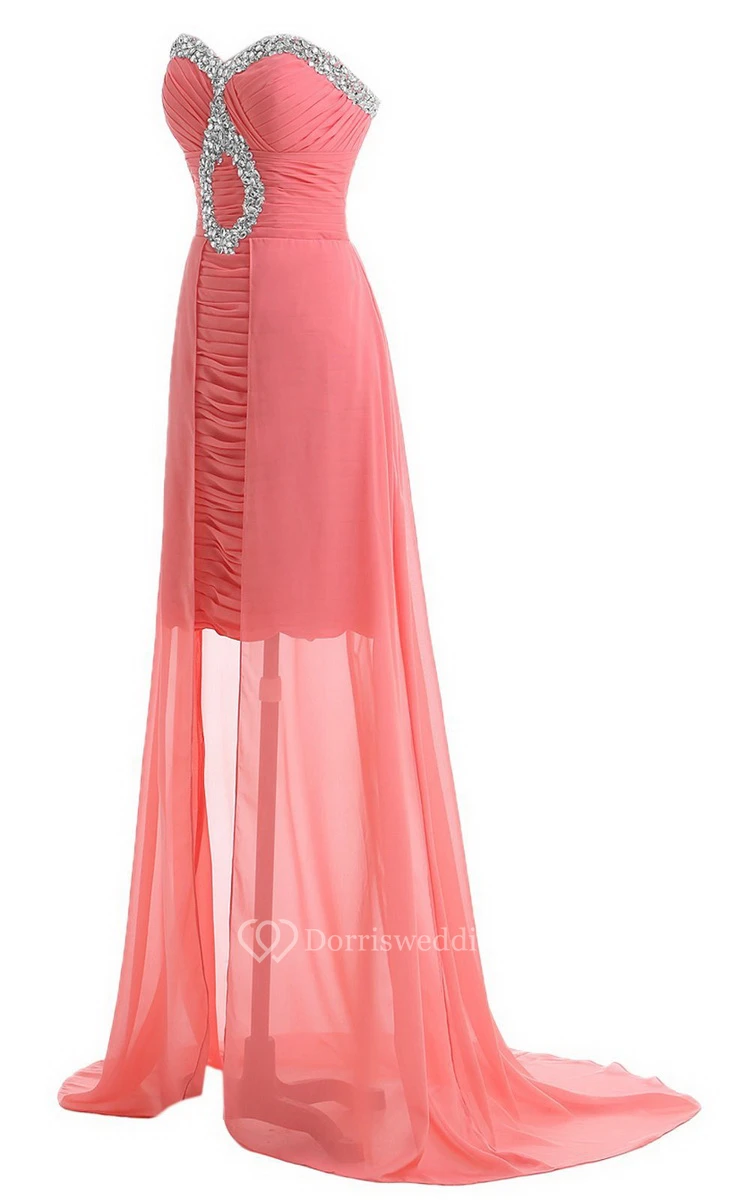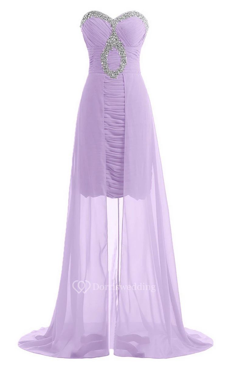 Sweetheart Long Chiffon Dress With Ruching and Sequins