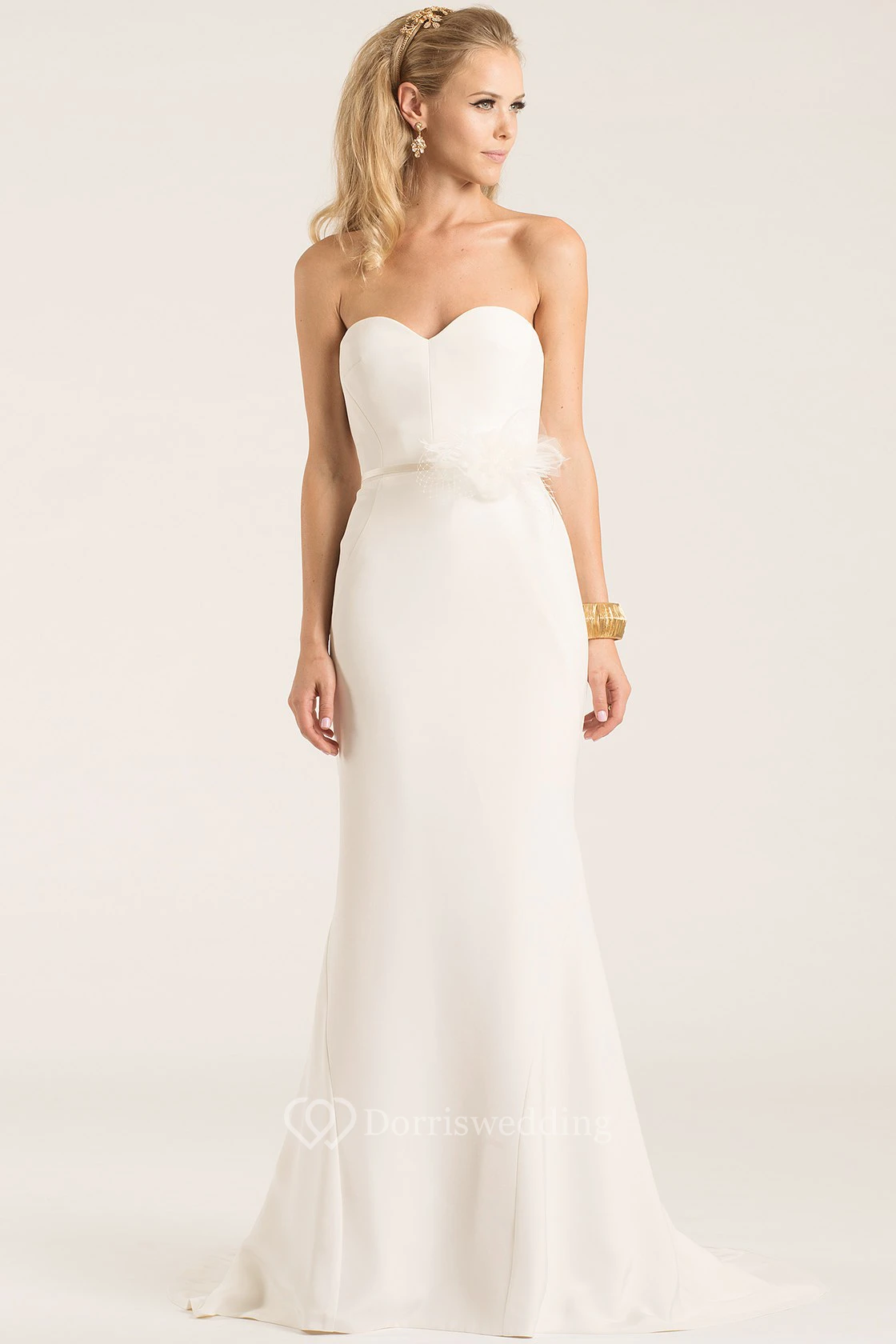 Sweetheart Long Chiffon Wedding Dress With Court Train And V Back