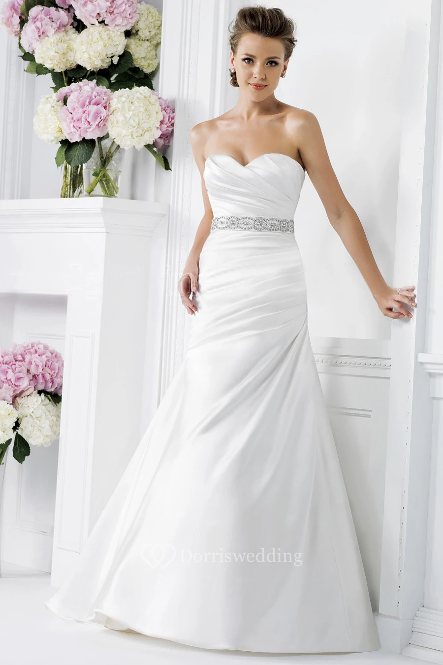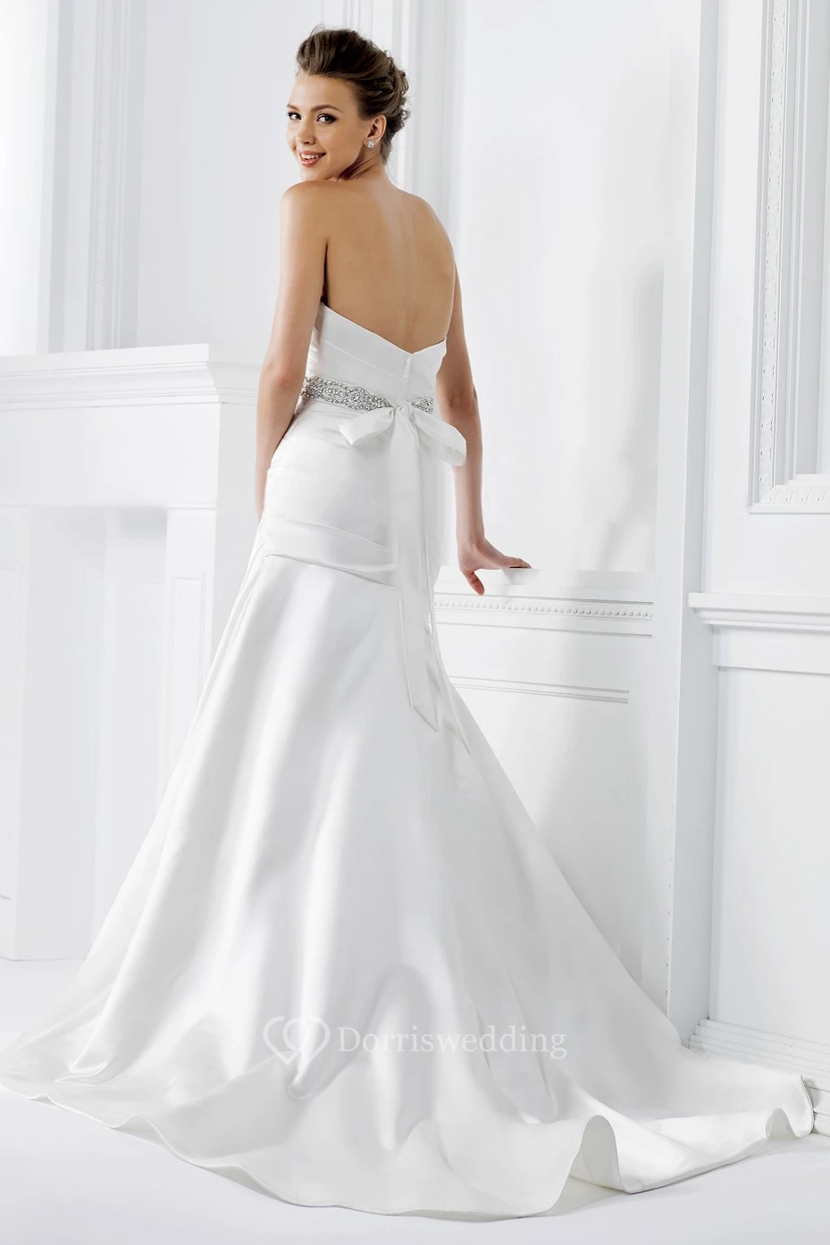 Sweetheart Long Gown With Asymmetrical Ruching And Bow Tie