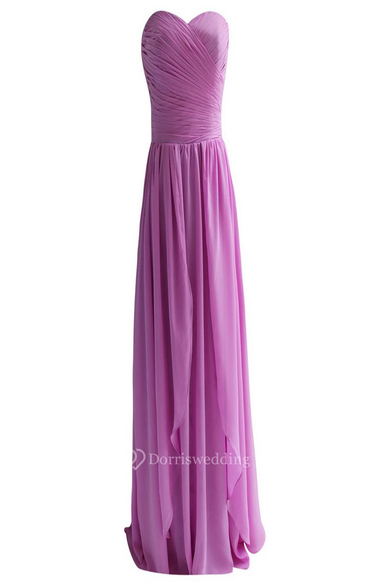 Sweetheart Long Layered Chiffon Dress With Ruching
