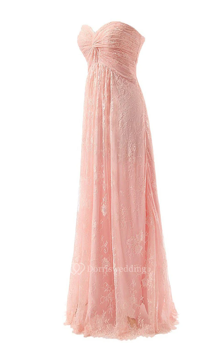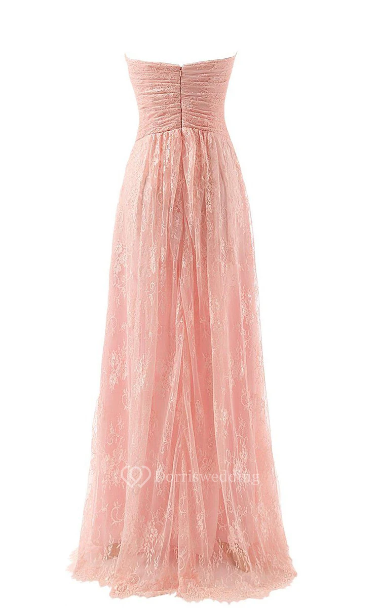 Sweetheart Long Ruched Dress With Lace Bodice