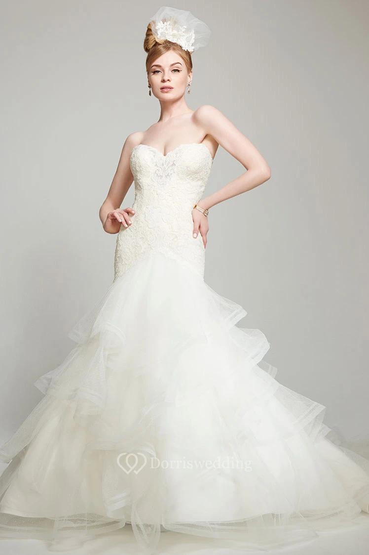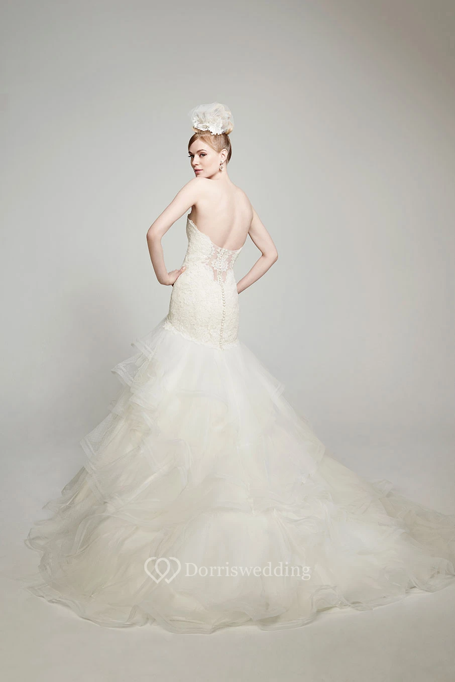 Sweetheart Maxi Appliqued Lace&Tulle Wedding Dress With Court Train And V Back