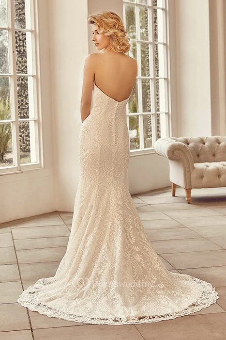 Sweetheart Maxi Appliqued Lace Wedding Dress With Sweep Train And V Back