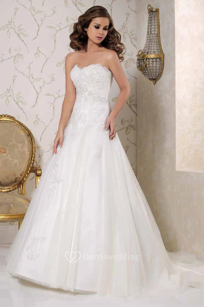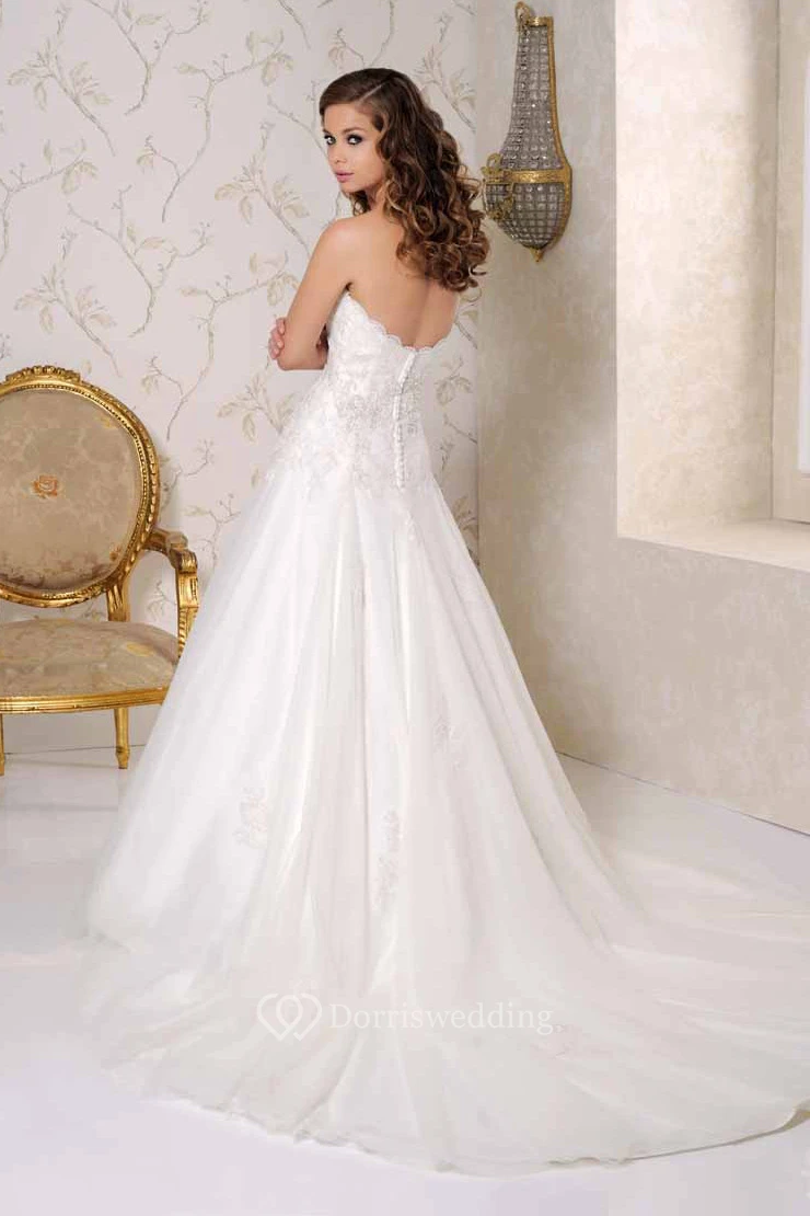 Sweetheart Maxi Appliqued Tulle Wedding Dress With Chapel Train And V Back
