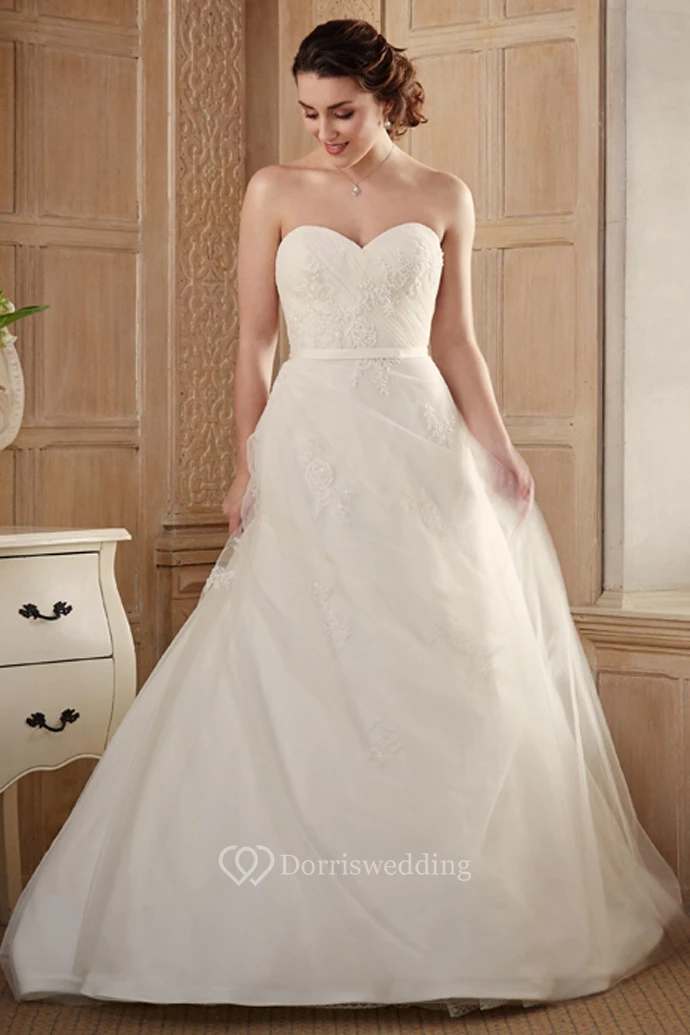 Sweetheart Maxi Appliqued Tulle Wedding Dress With Sweep Train