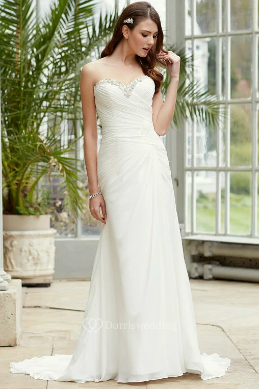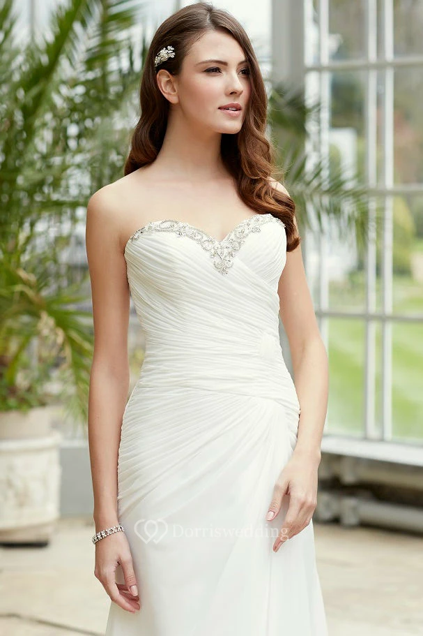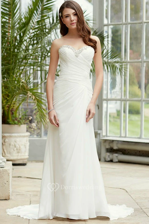 Sweetheart Maxi Beaded Chiffon Wedding Dress With Sweep Train