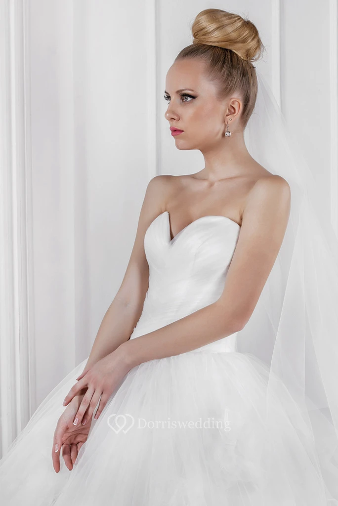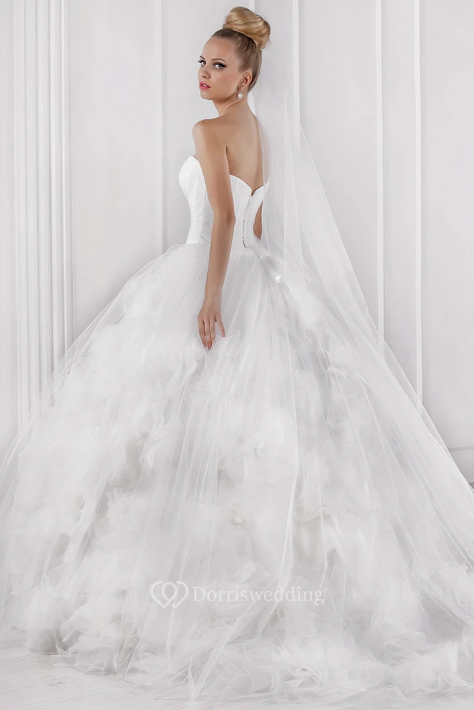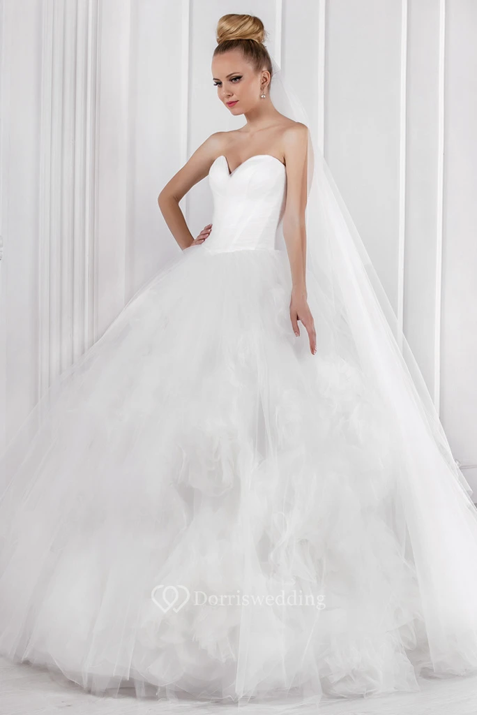 Sweetheart Maxi Criss-Cross Ruffled Tulle Wedding Dress With Flower And Corset Back