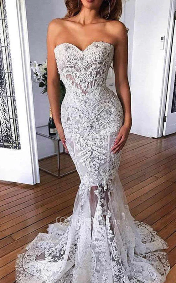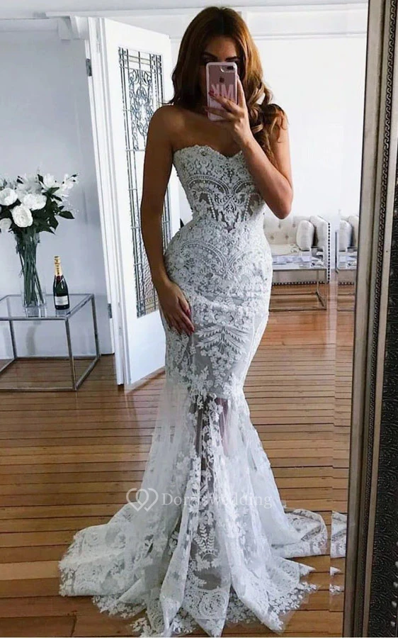Sweetheart Mermaid Lace Applique Wedding Dress