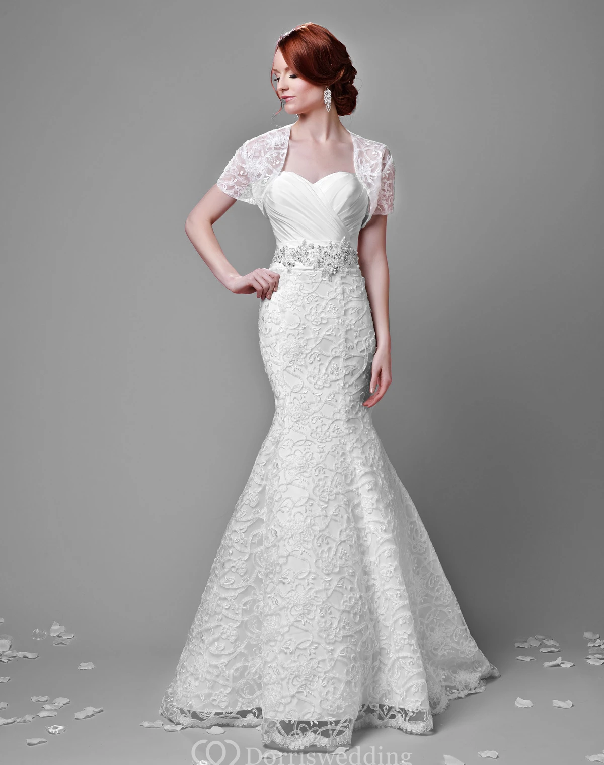 Sweetheart Mermaid Lace Wedding Dress With Metallic Waist And Short Sleeve Jacket