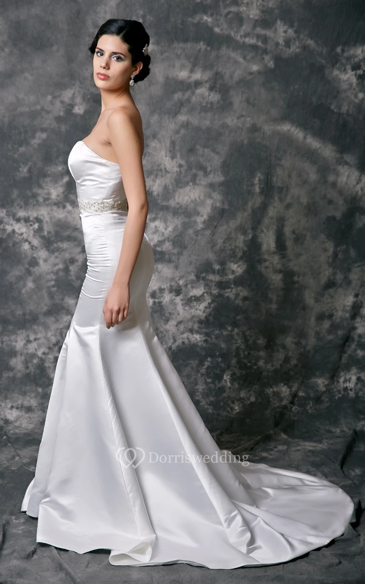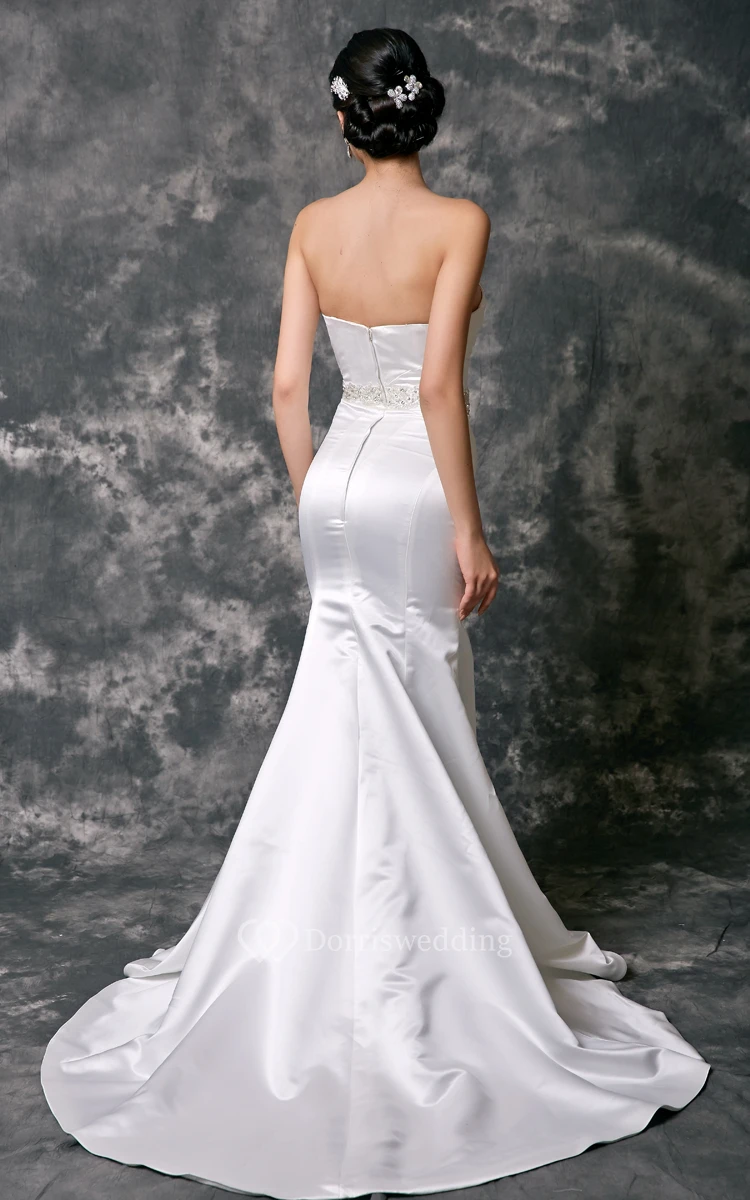 Sweetheart Mermaid Satin Wedding Gown With Beaded Waist