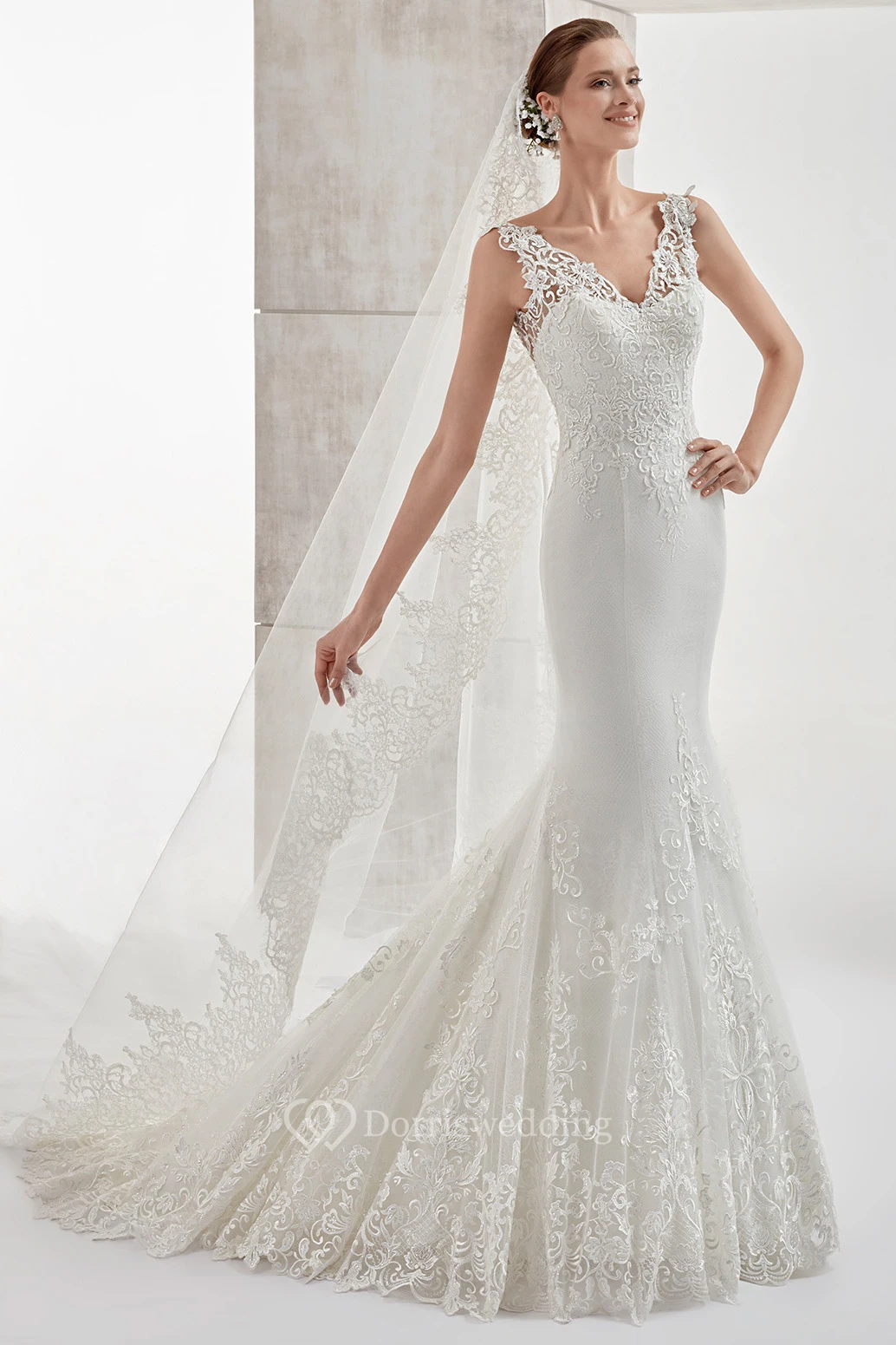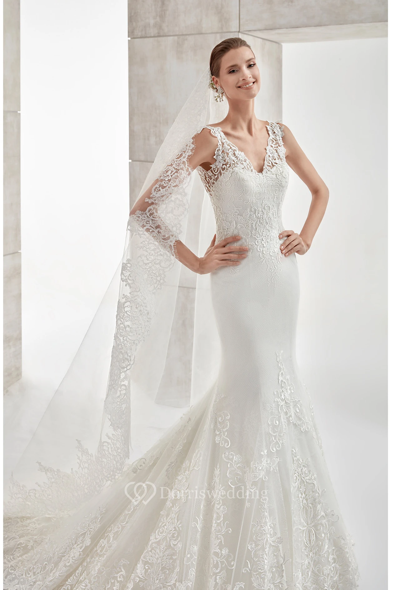 • Hemline/Train: Floor-length