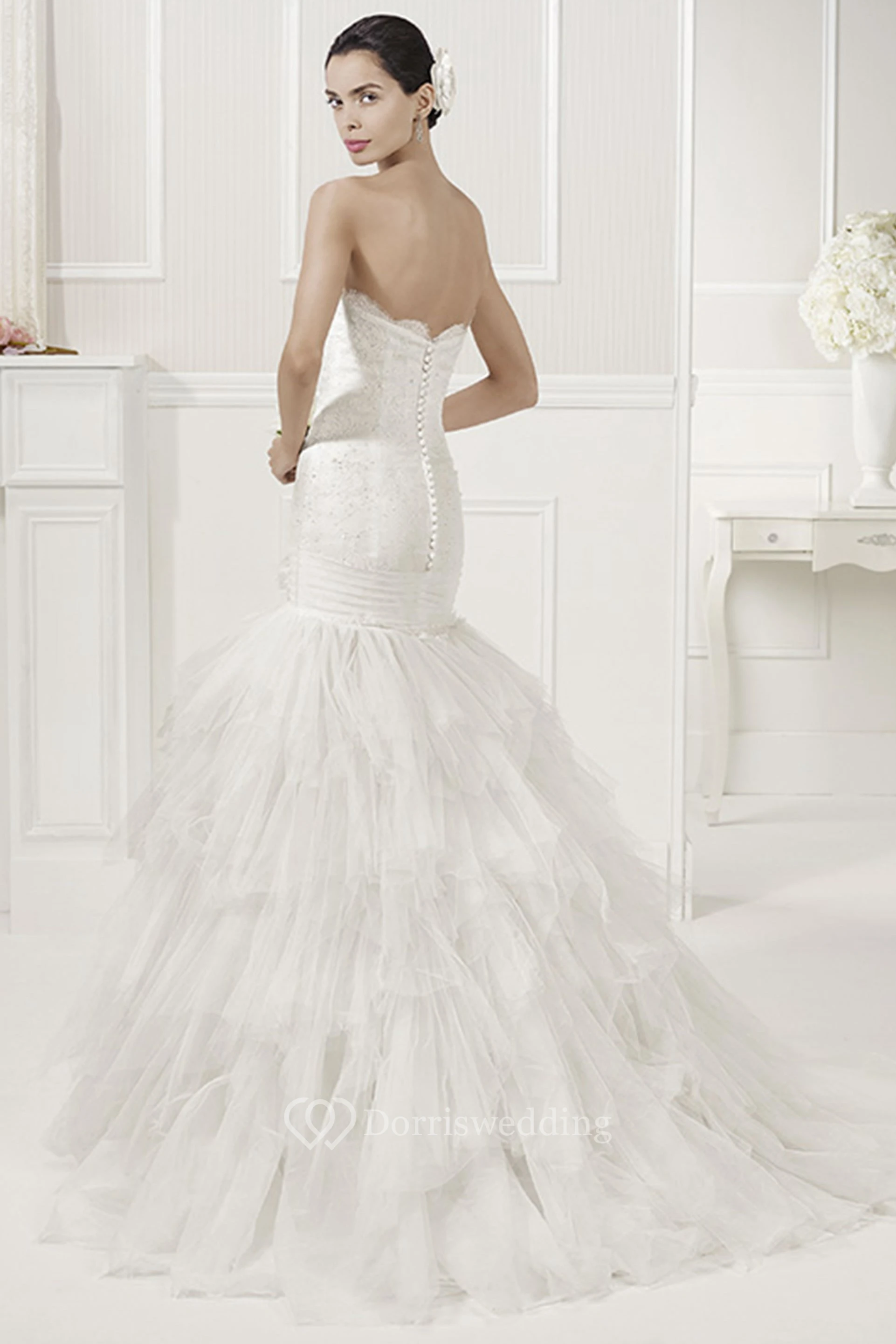 Sweetheart Mermaid Tiered Tulle Gown With Removable Lace Cap Sleeves