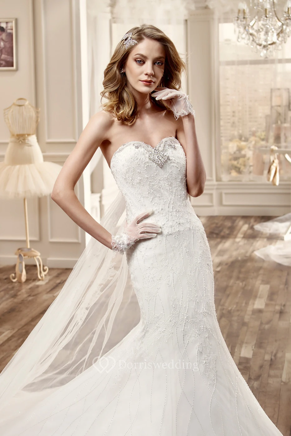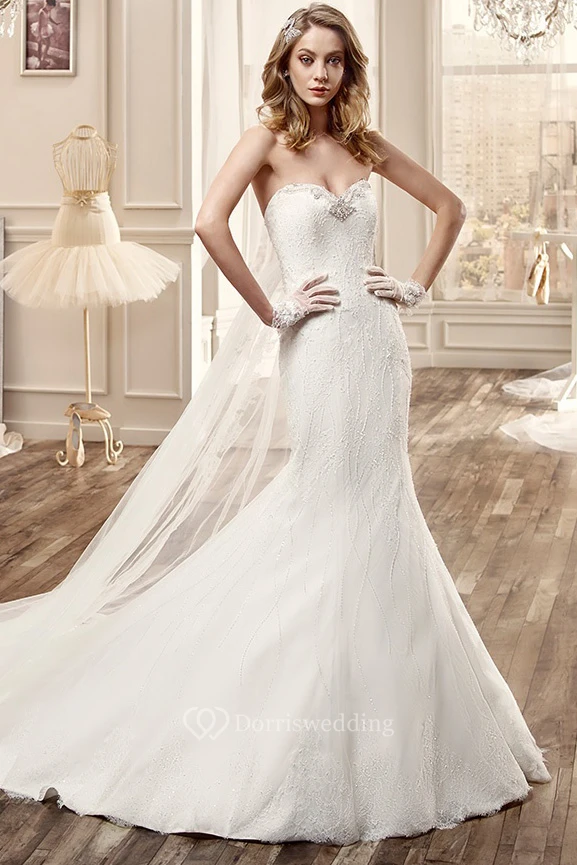 Sweetheart Mermaid Wedding Dress With Court Train And Beaded Bust